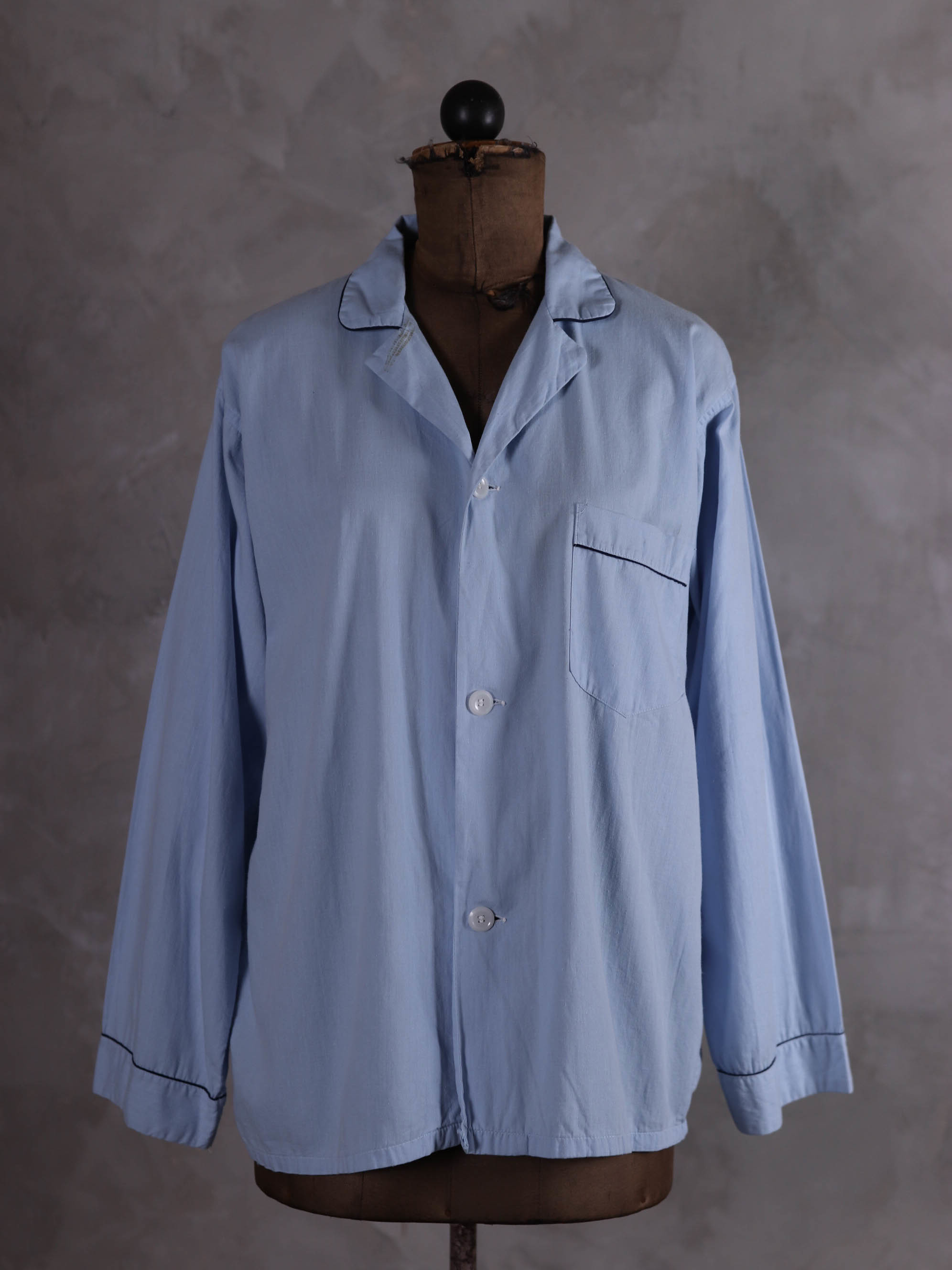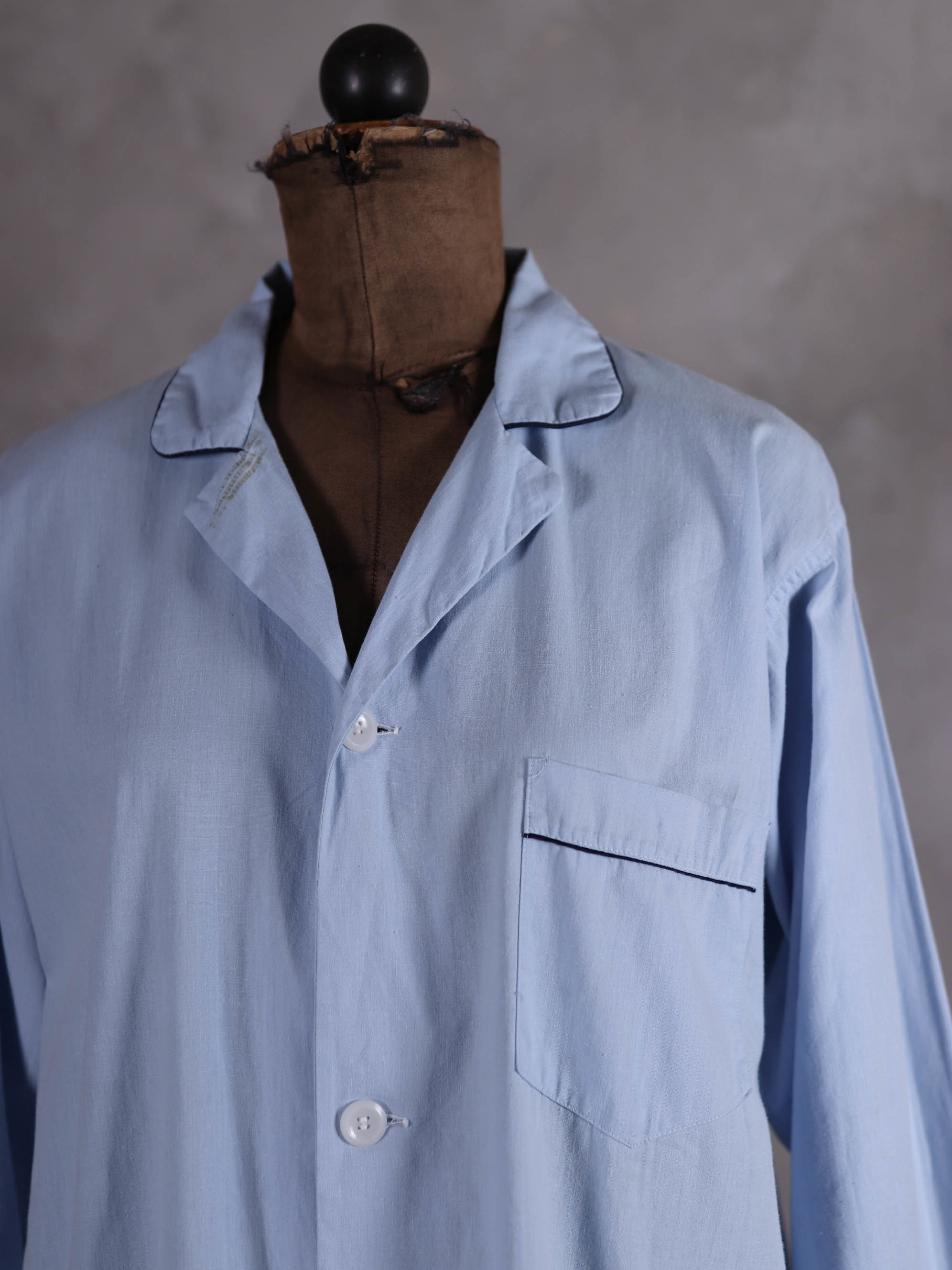 1960年代生產/加拿大睡衣/翻領/淡藍色/深藍色滾邊