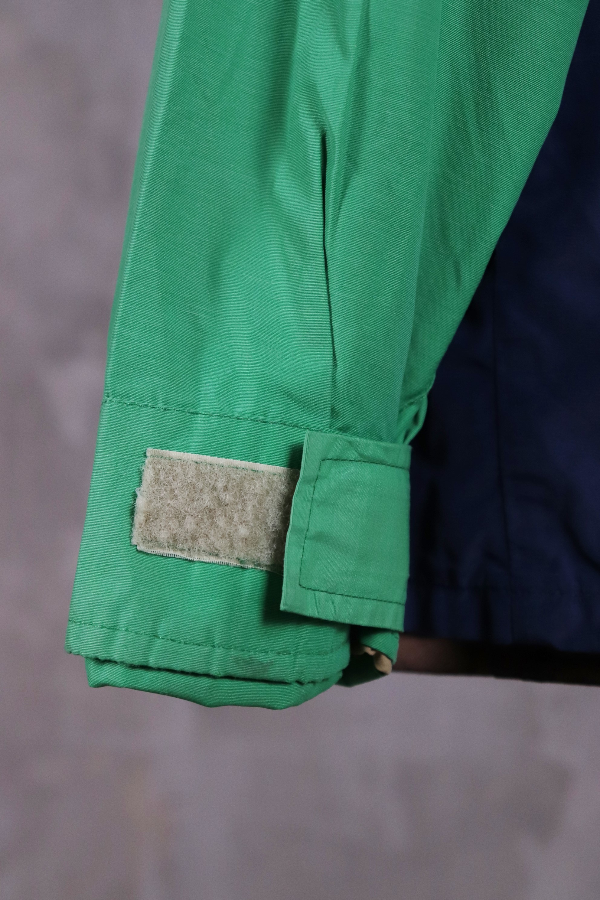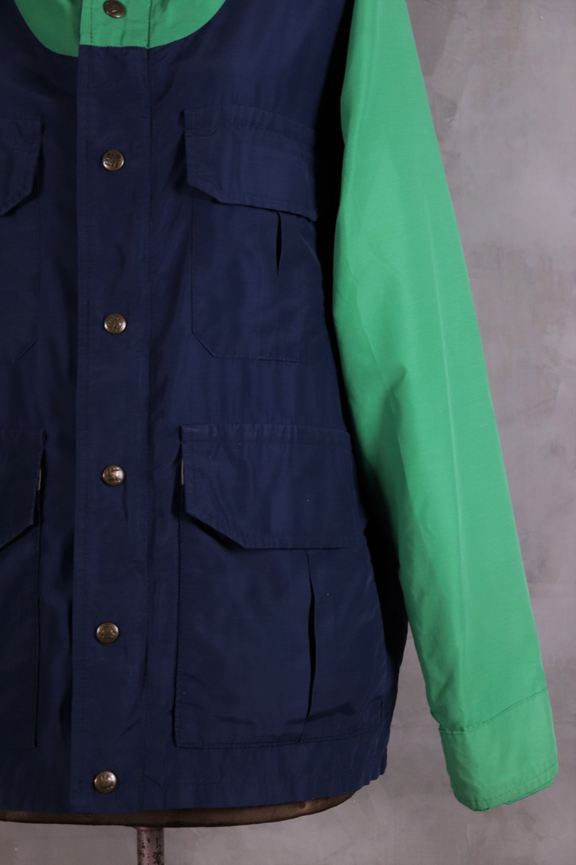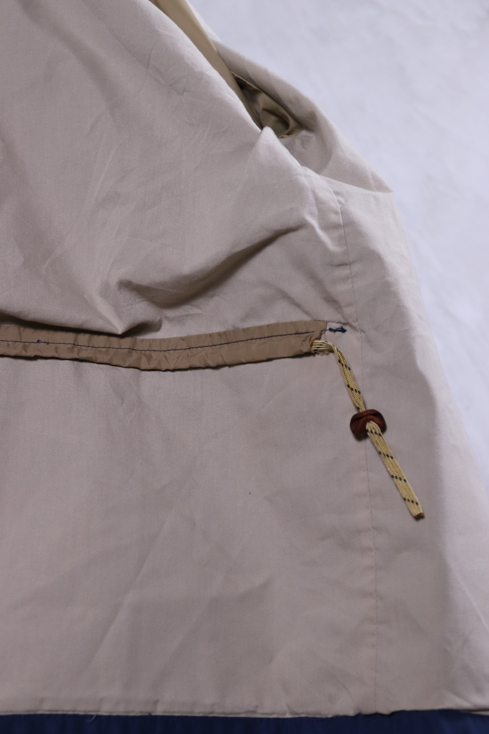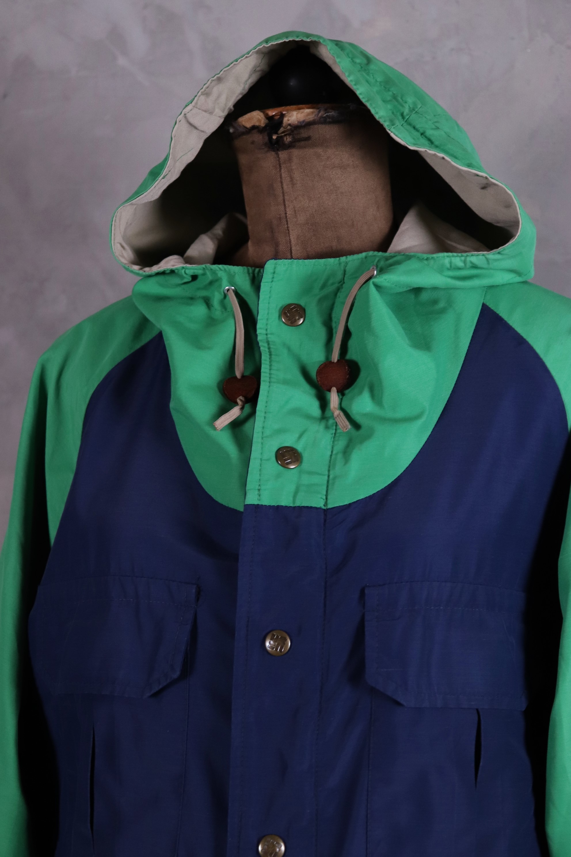 1970-1980年代生產/尼龍防風材質/YKK拉鍊/四口袋/袖口可調整/連帽外套/腰部及帽沿有抽繩/雙色拼接