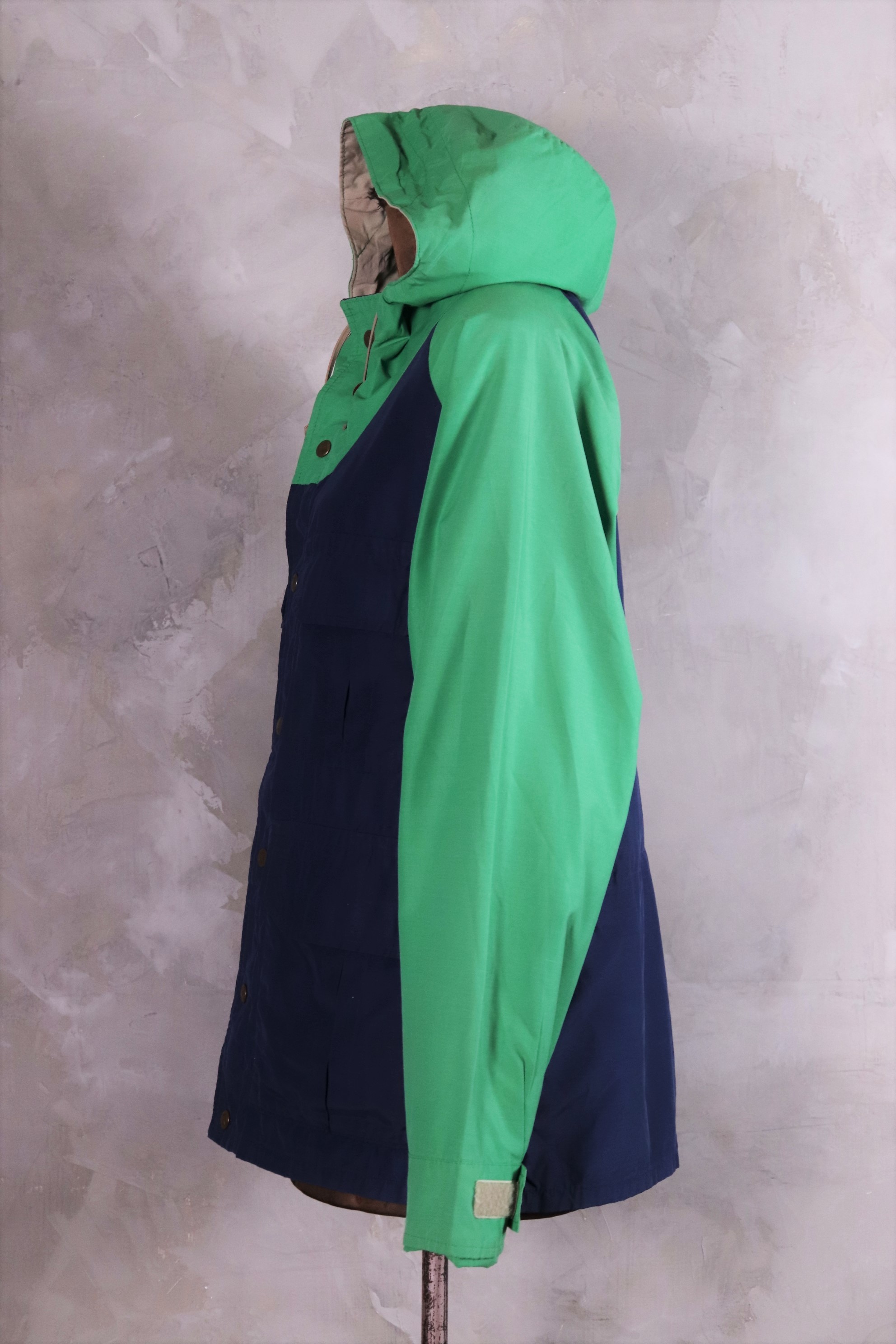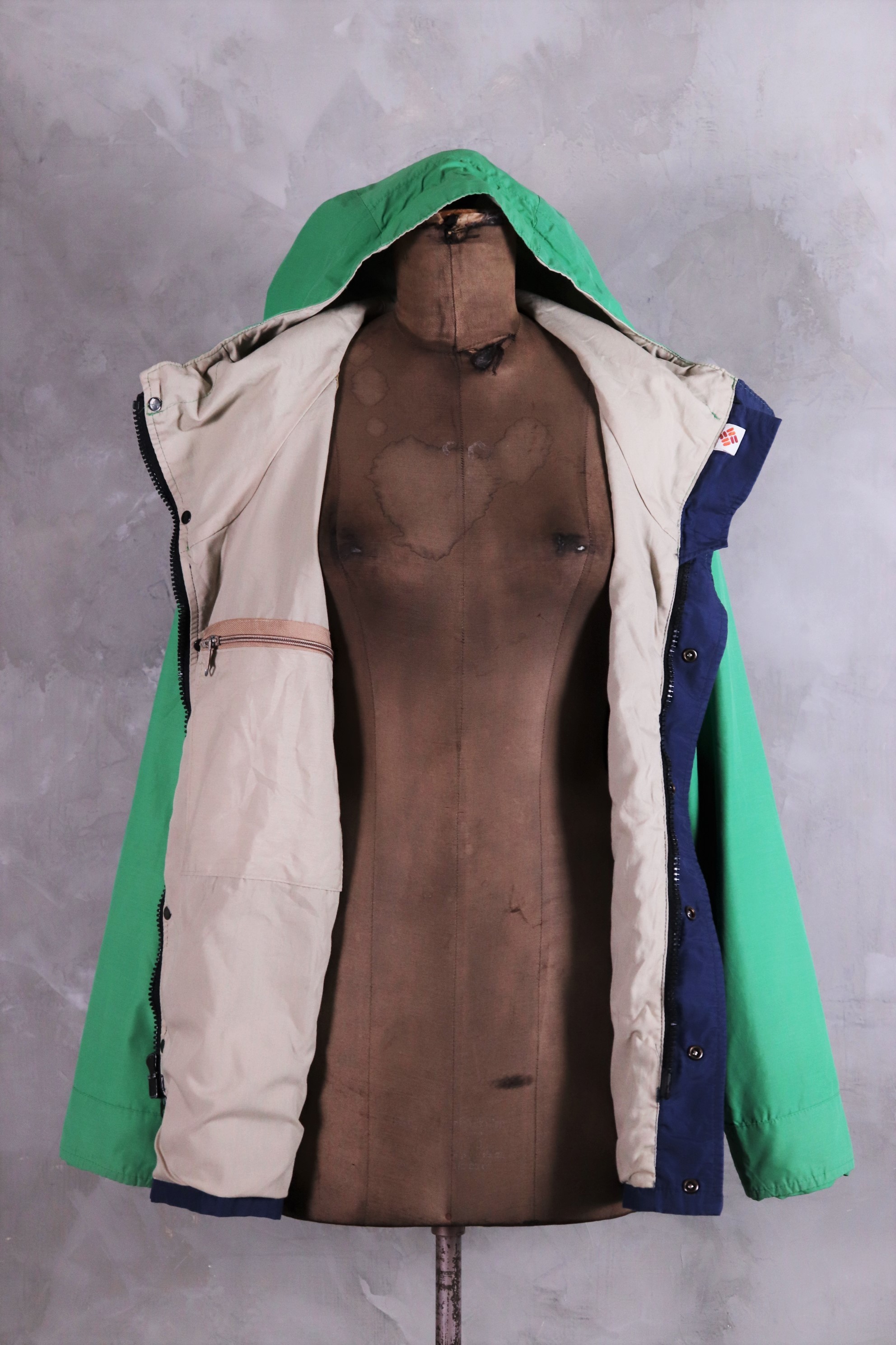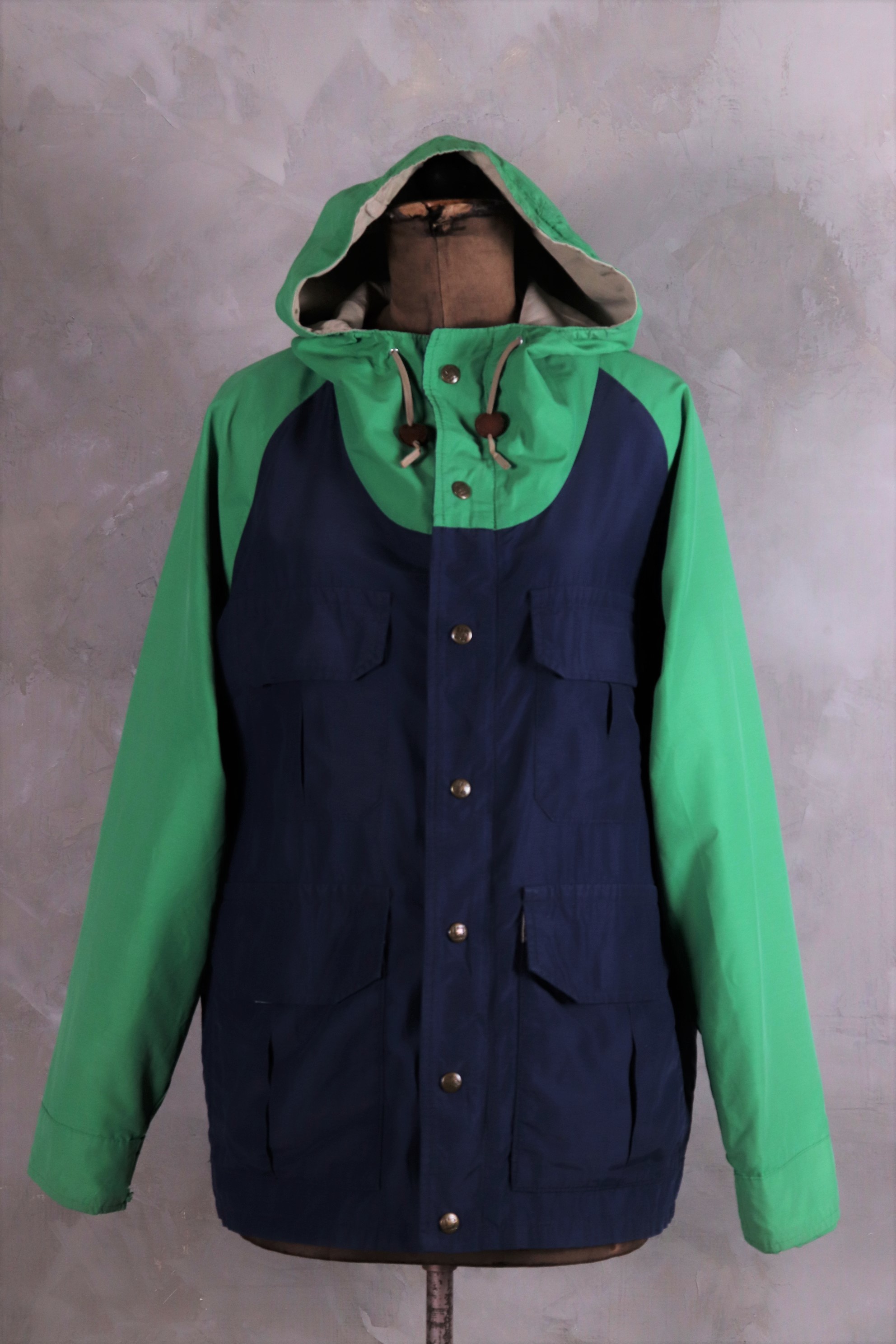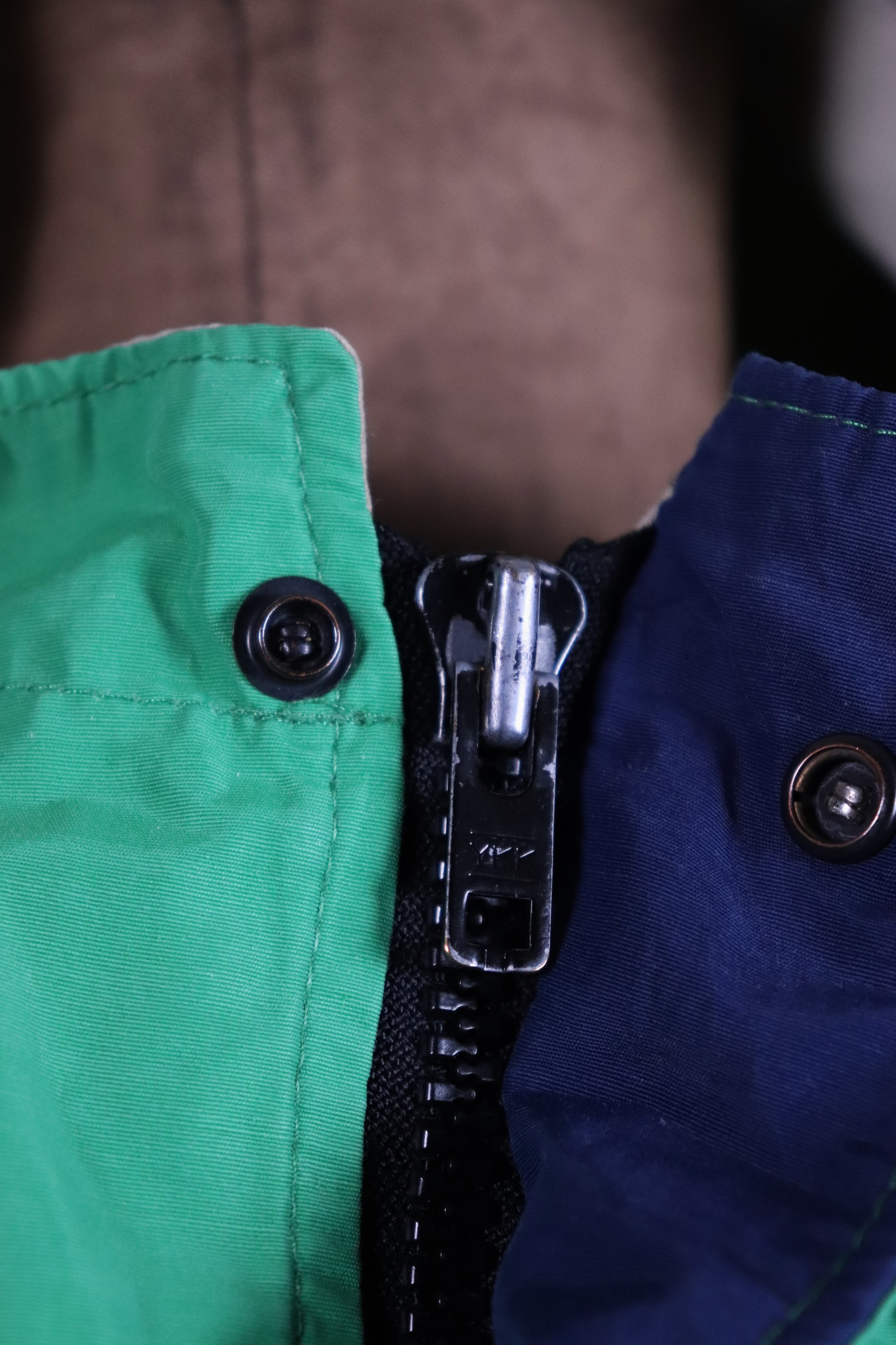 1970-1980年代生產/尼龍防風材質/YKK拉鍊/四口袋/袖口可調整/連帽外套/腰部及帽沿有抽繩/雙色拼接