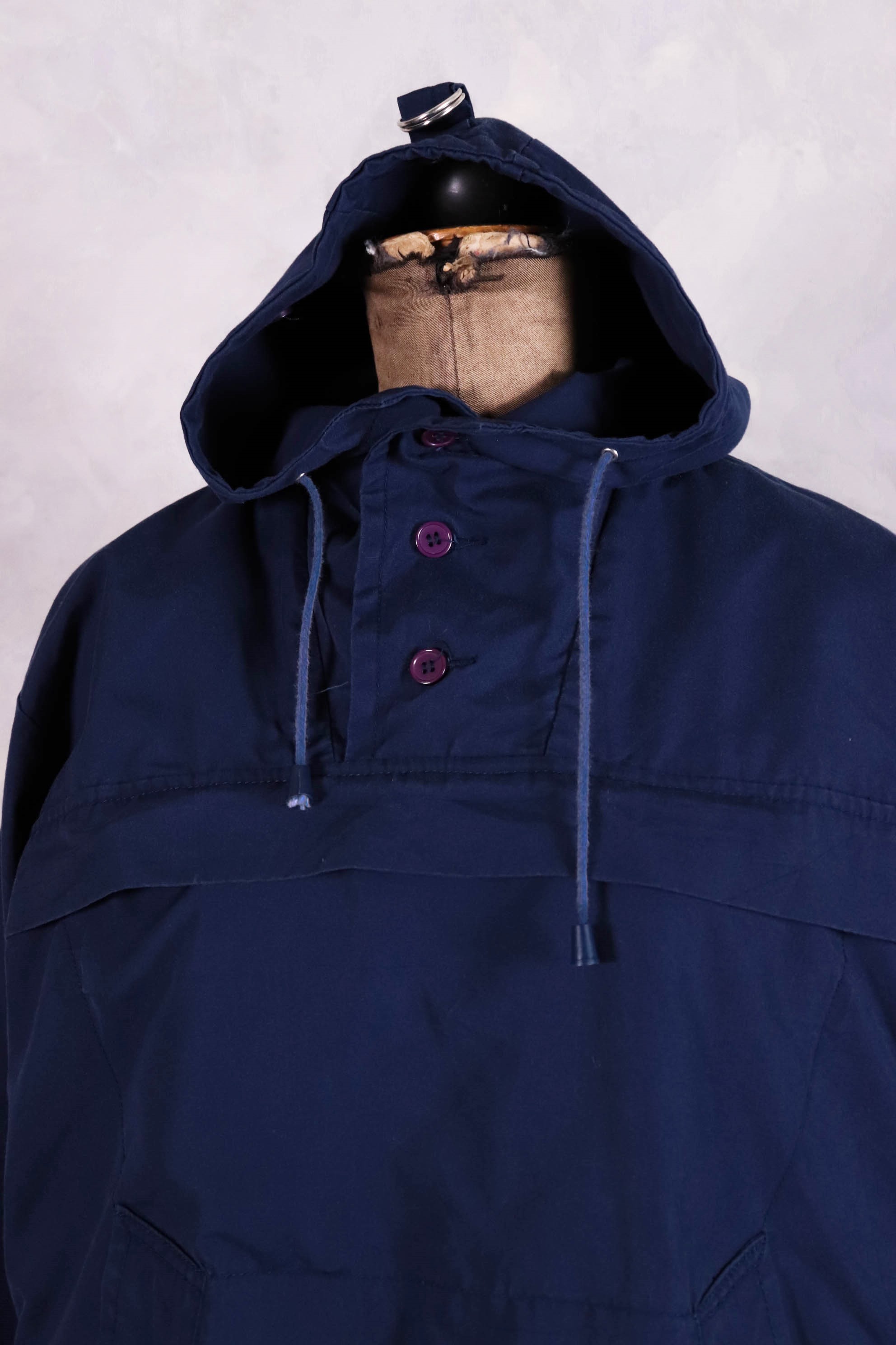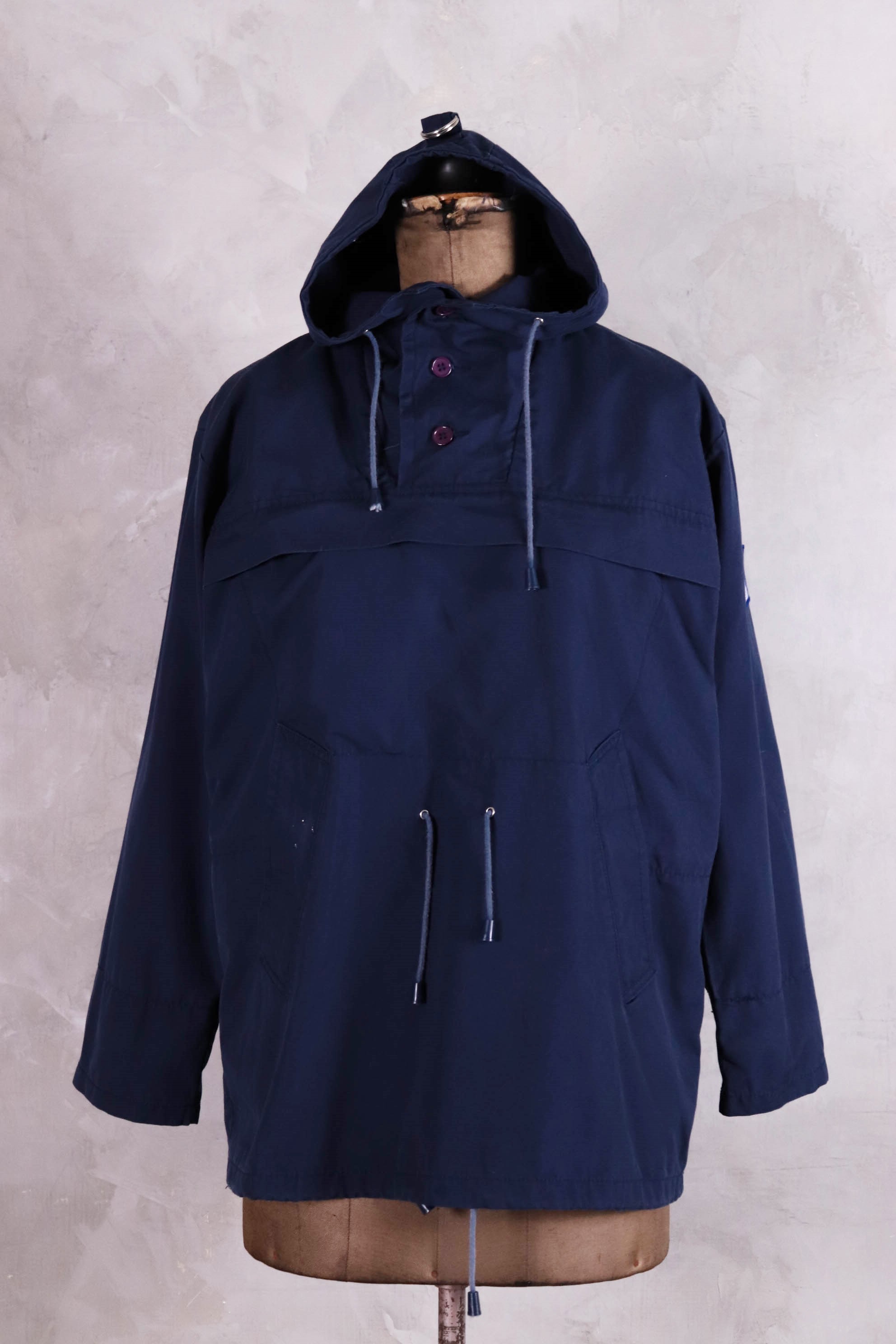 1970-1980年代生產/歐洲機能套頭上衣/胸前大口袋/下擺兩側口袋/腰部、下擺及帽圍有調節繩/脖子內層擋風片有拉鍊/帽子有調節釦可收納/袖口內有螺紋縮口