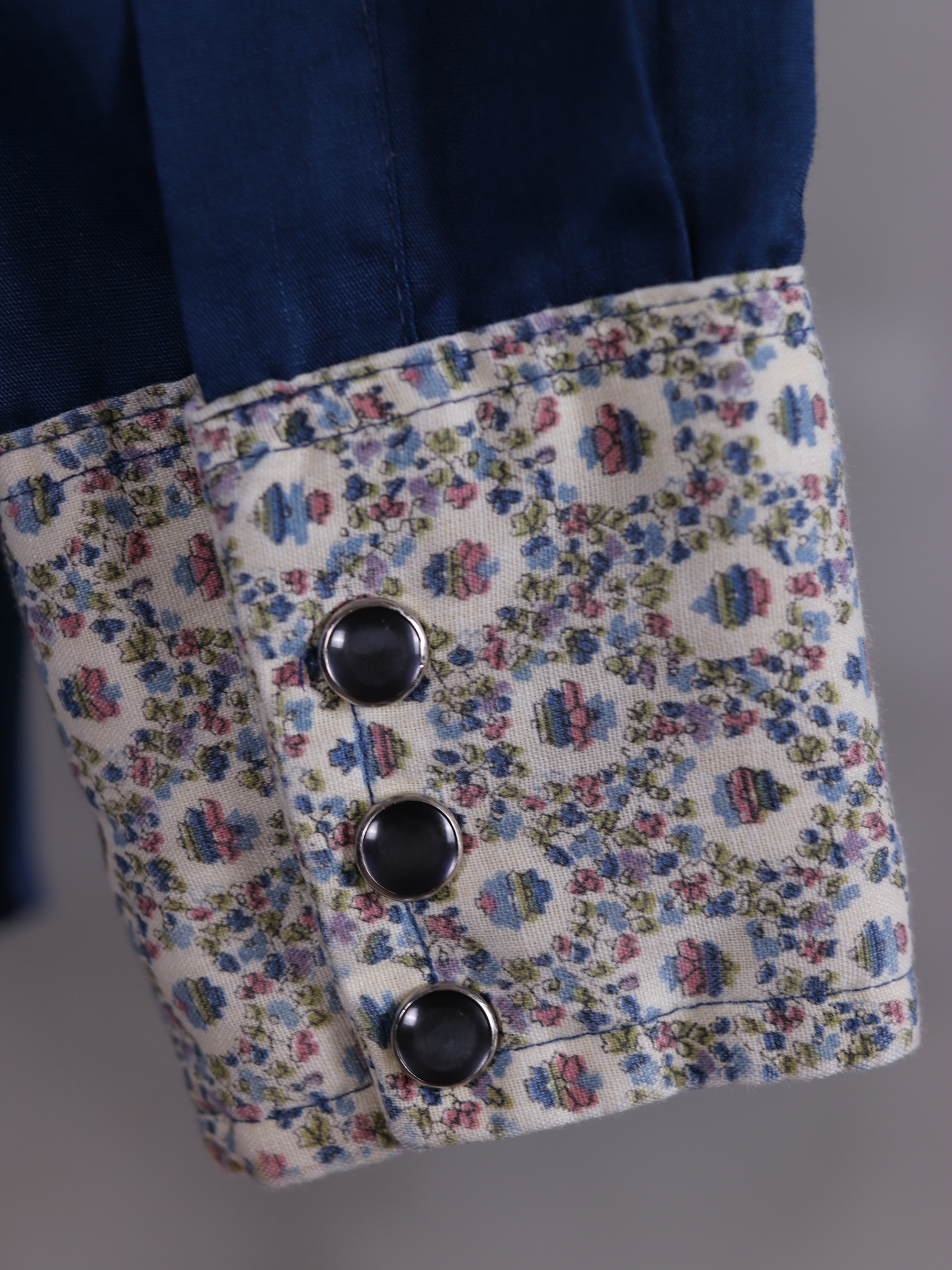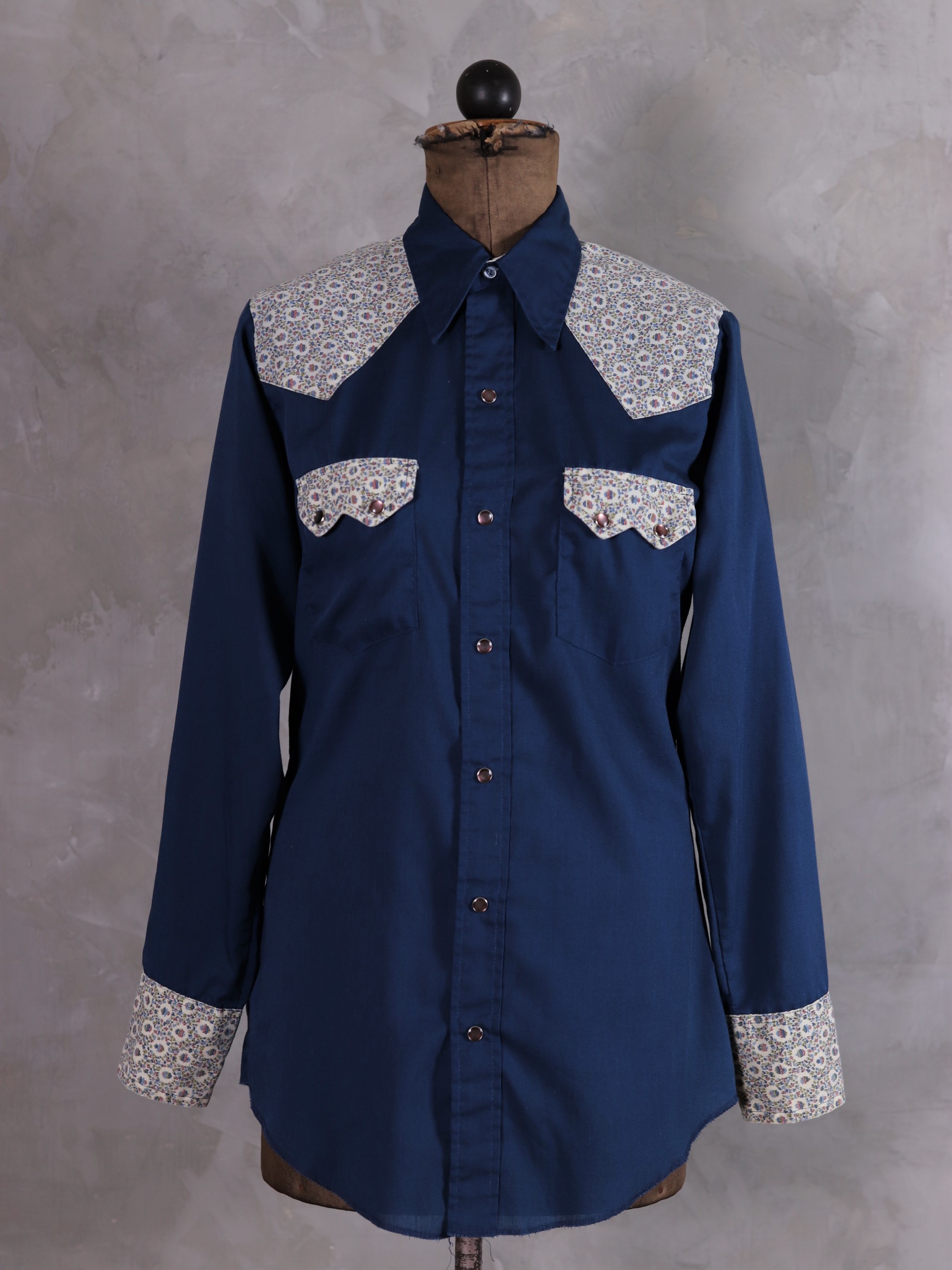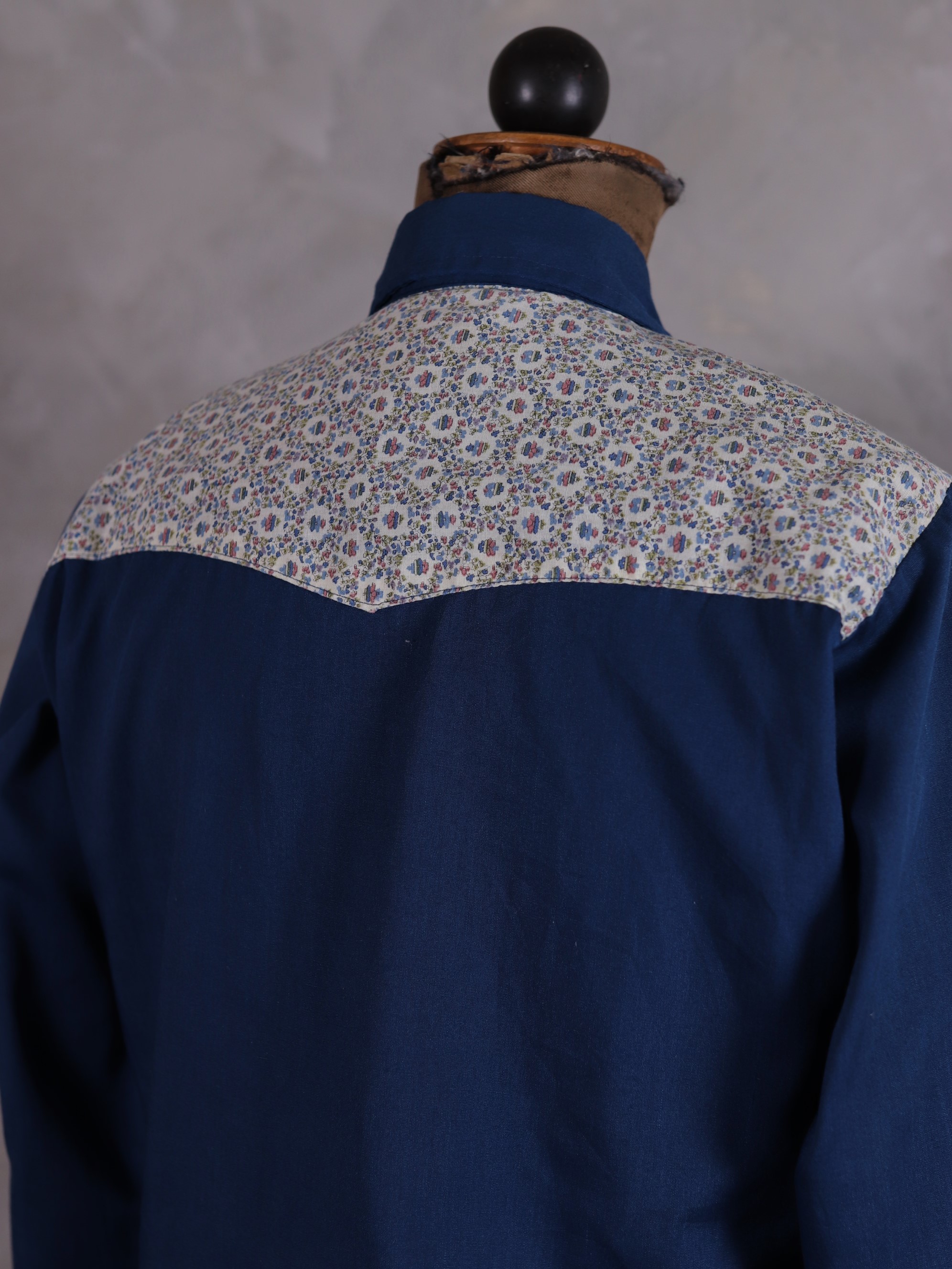 1970年代生產/美國製/DEE CEE品牌/西部襯衫/碎花拼接面料/胸口雙珍珠釦鋸齒袋蓋/珍珠釦/袖口三顆排釦