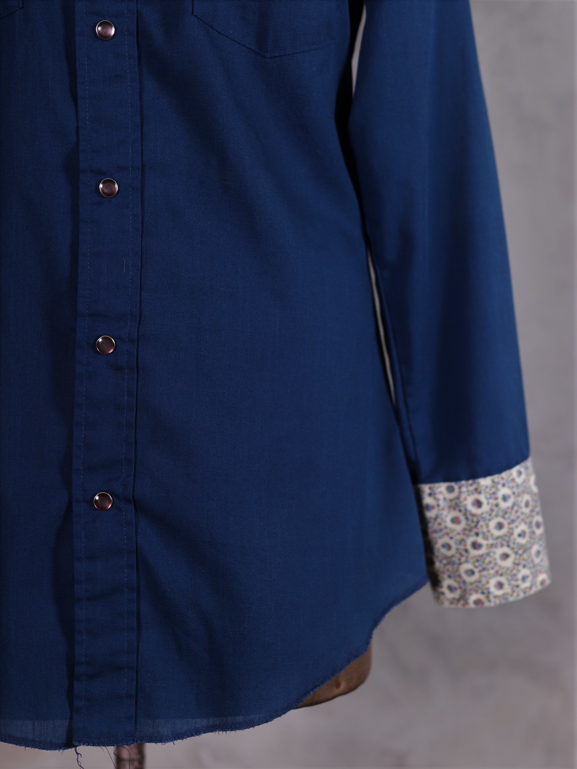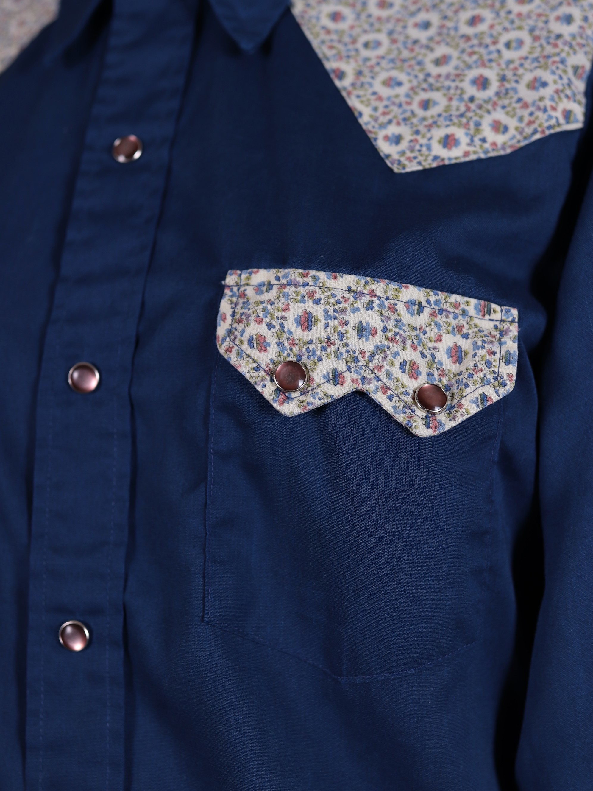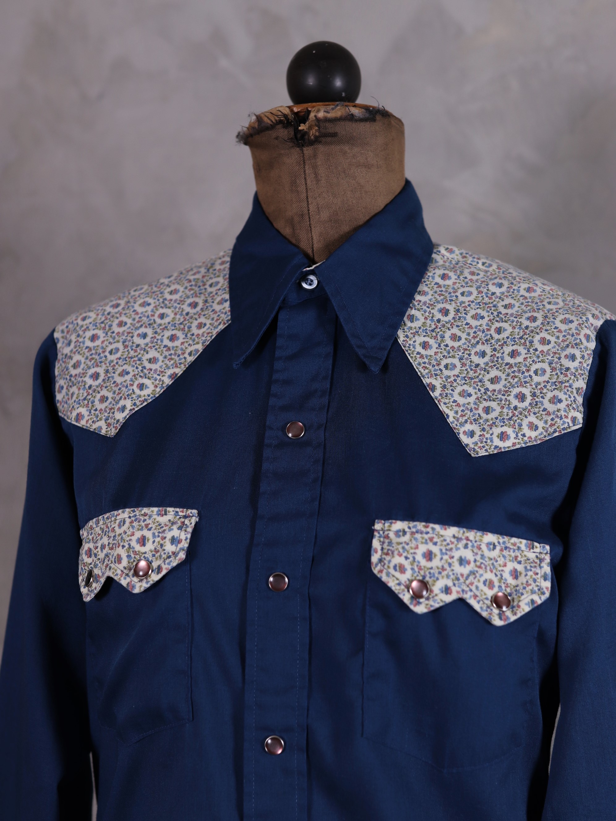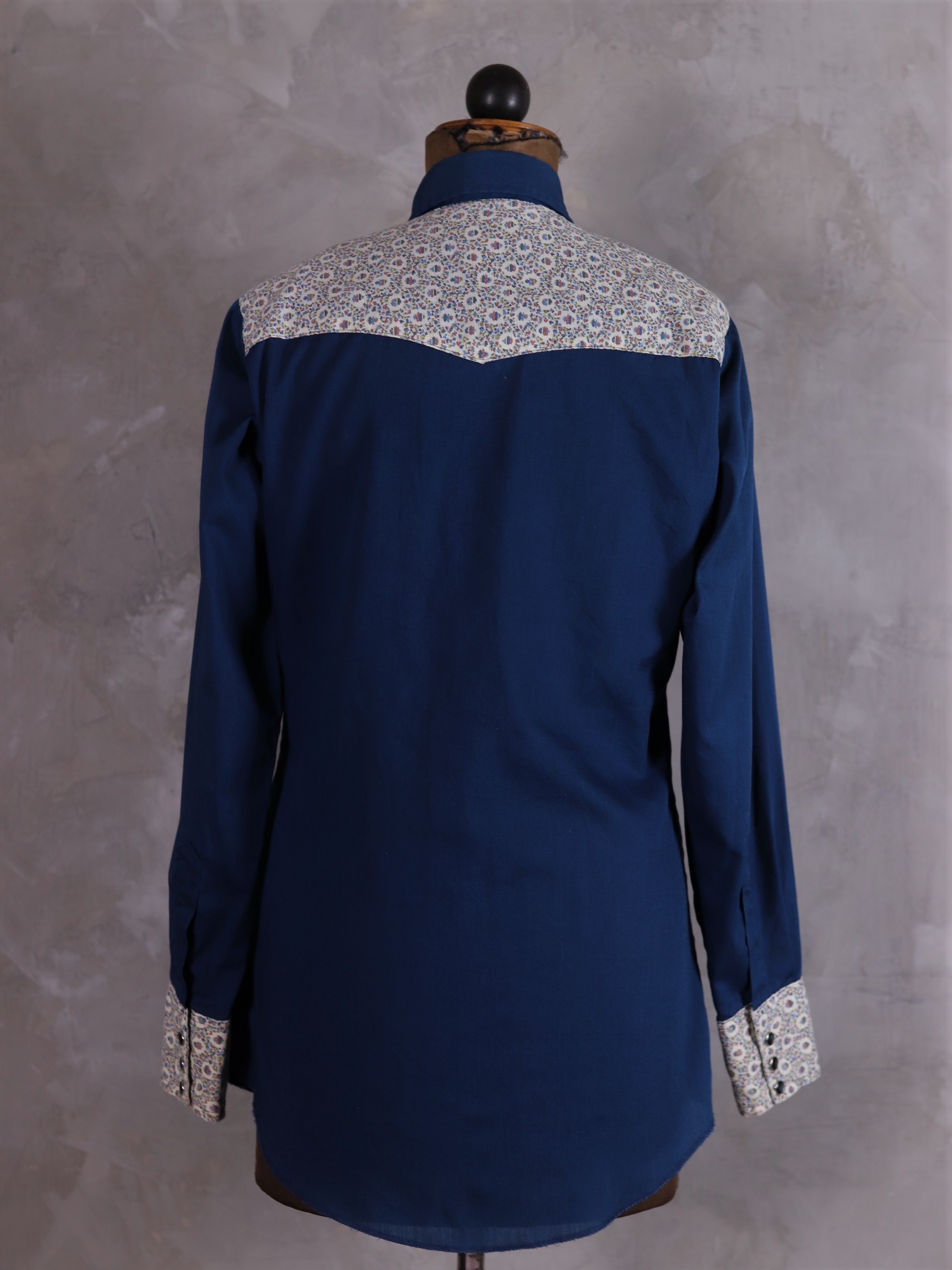1970年代生產/美國製/DEE CEE品牌/西部襯衫/碎花拼接面料/胸口雙珍珠釦鋸齒袋蓋/珍珠釦/袖口三顆排釦