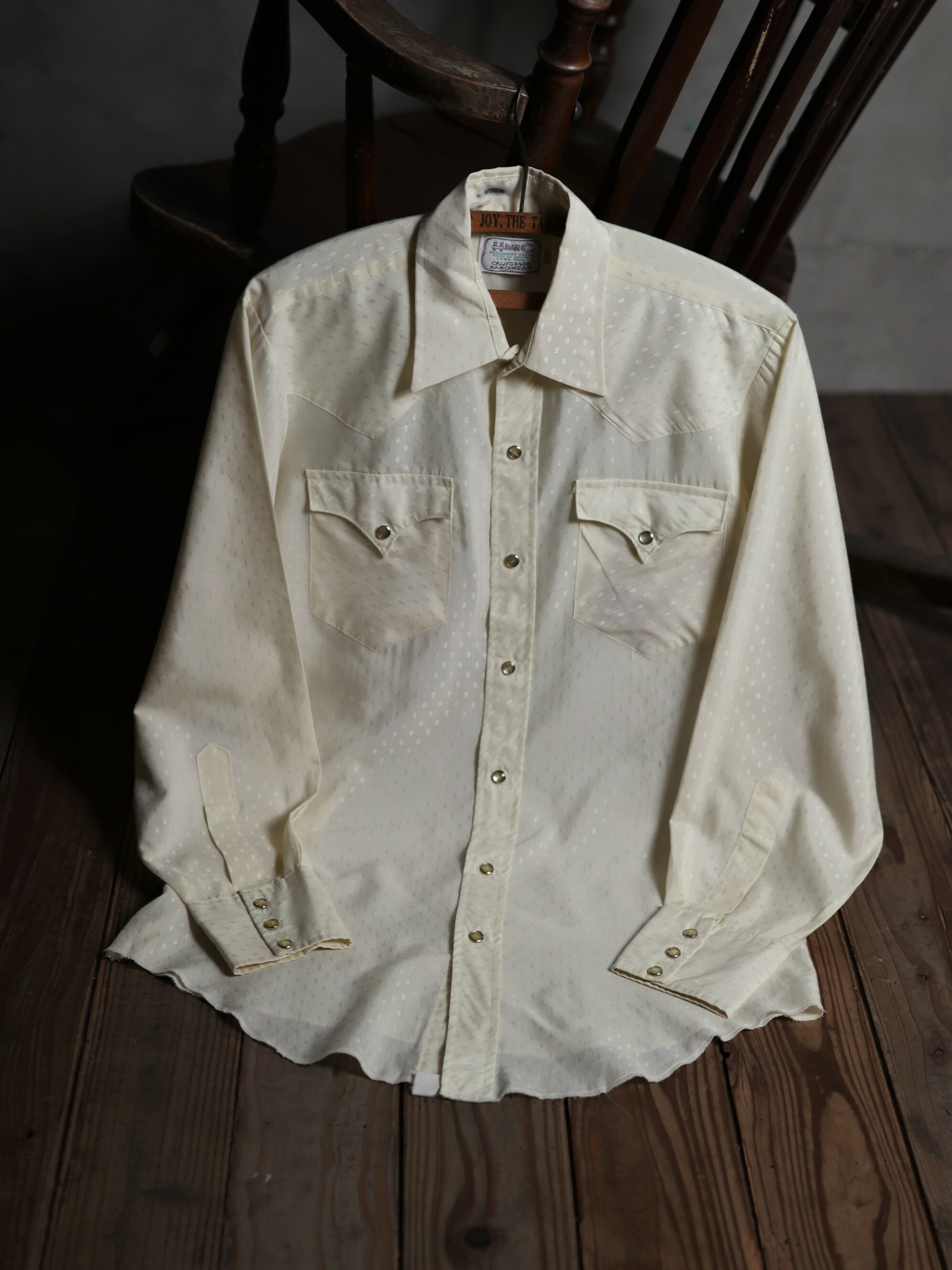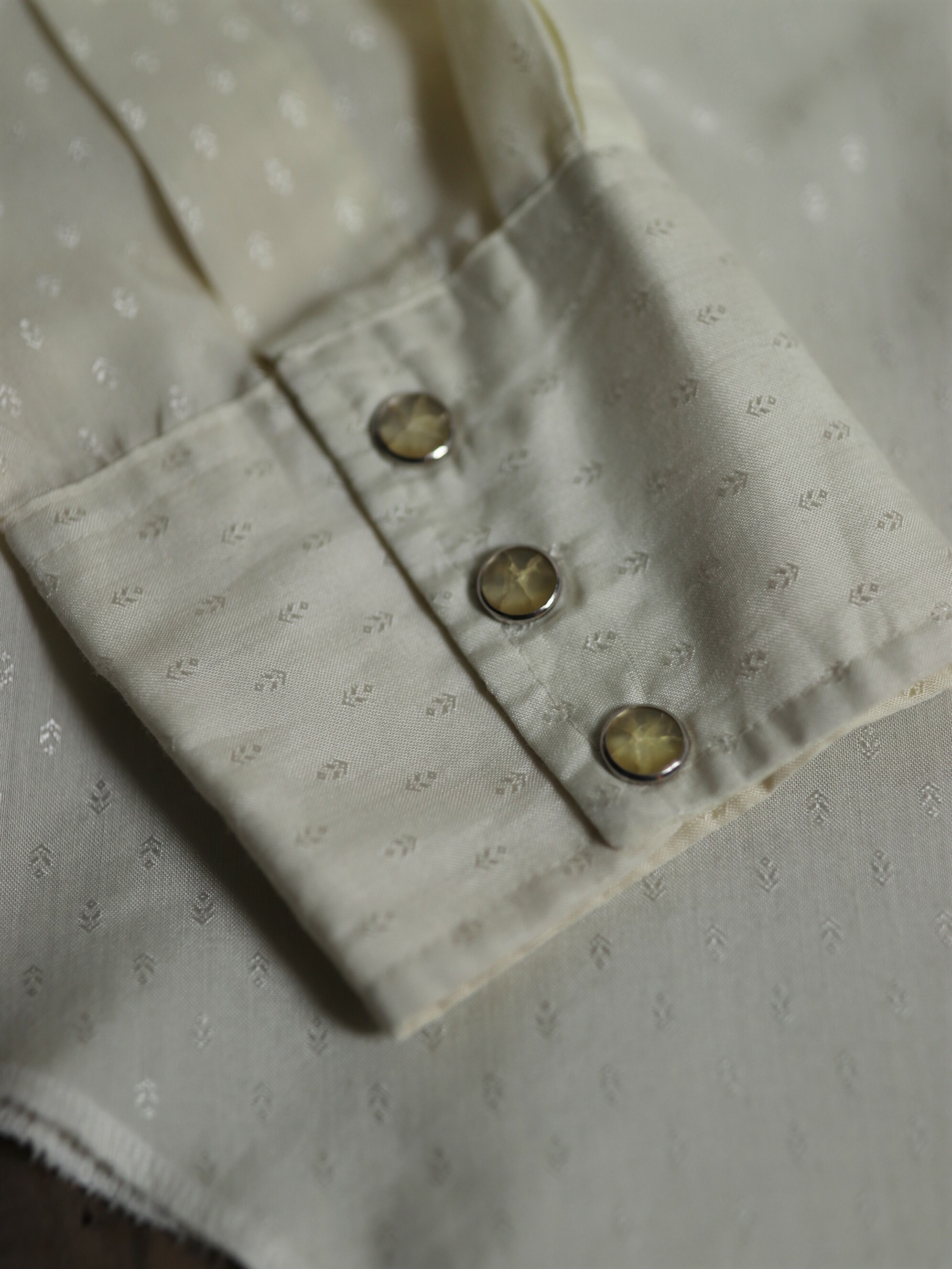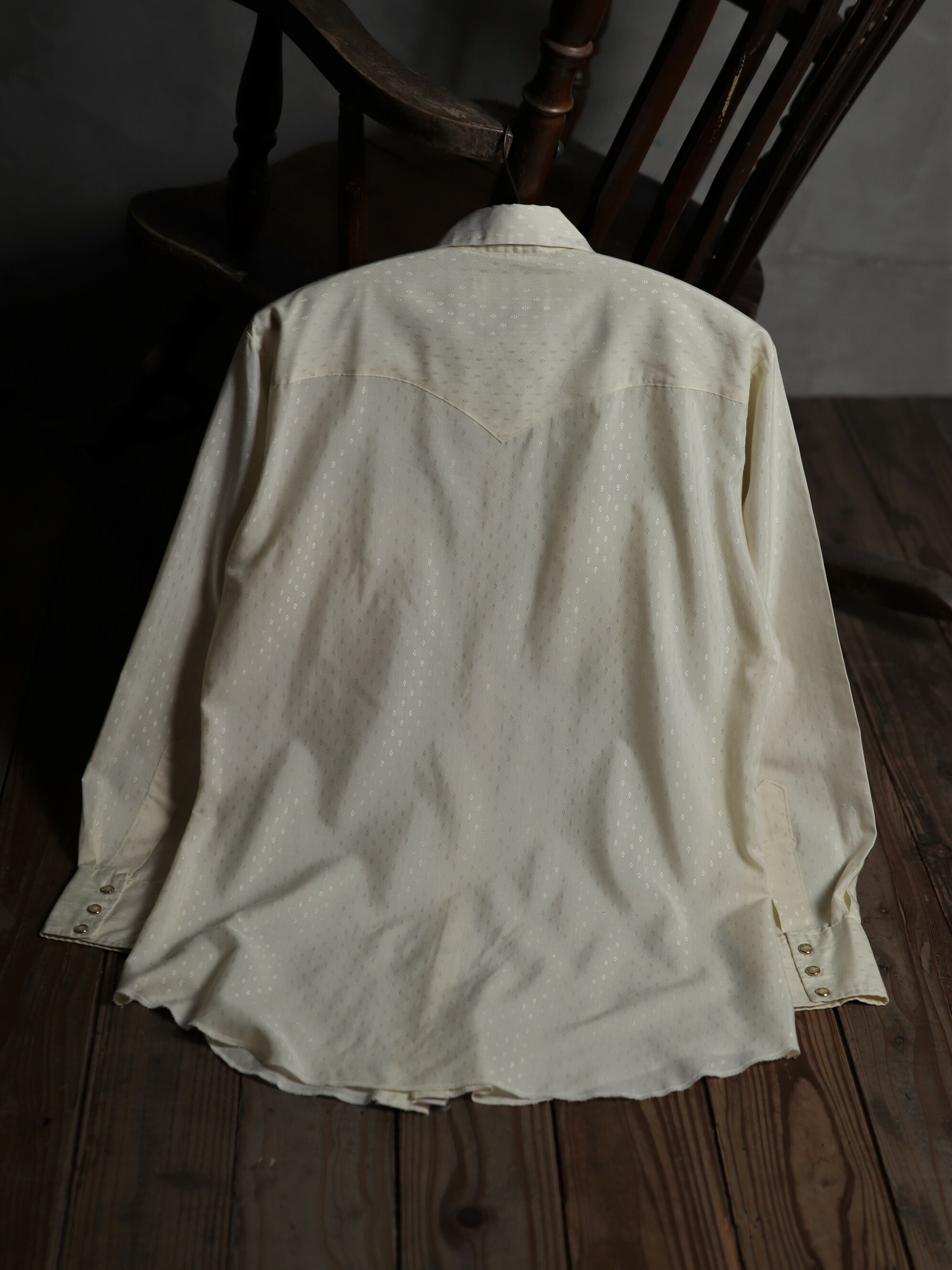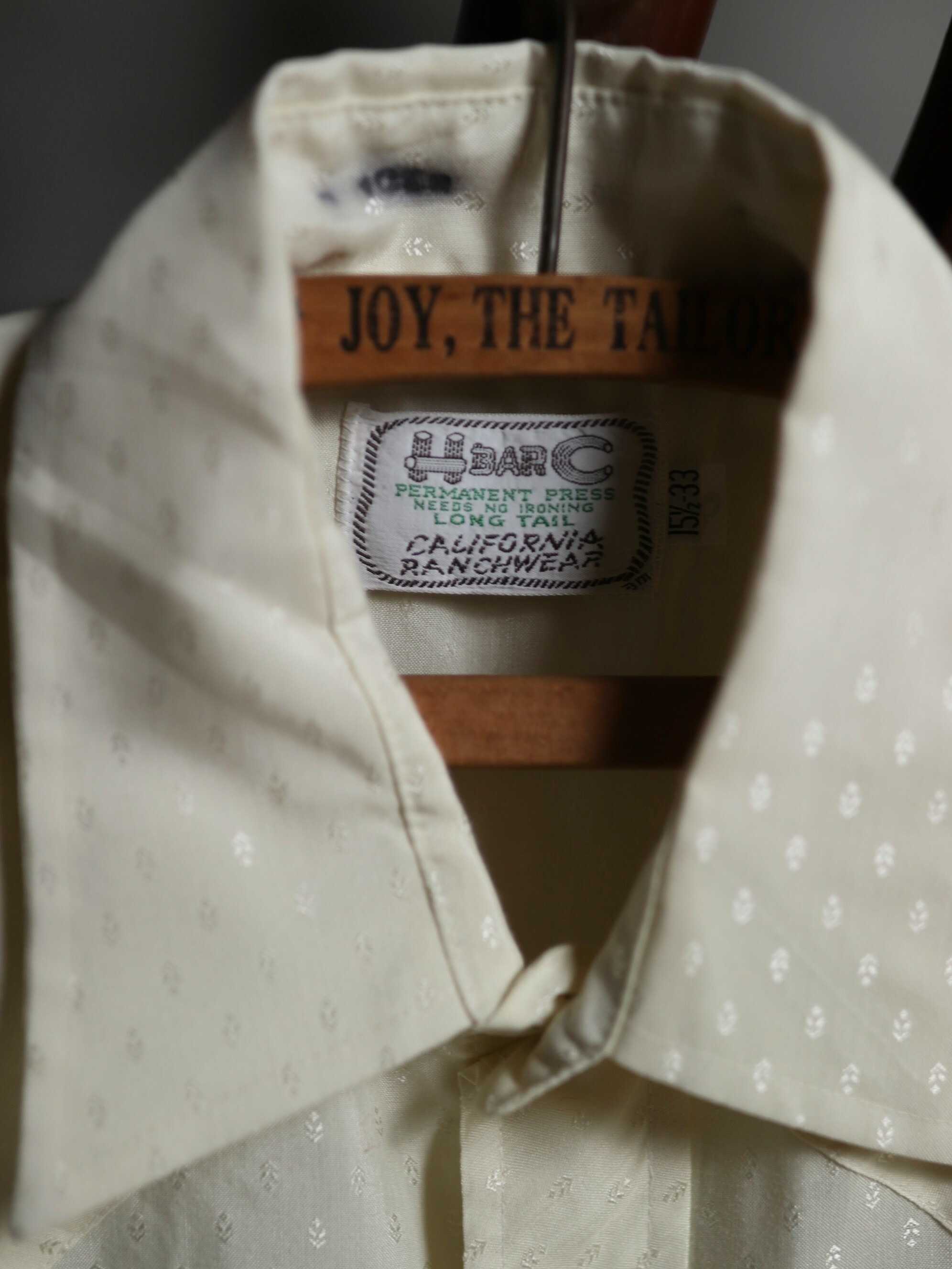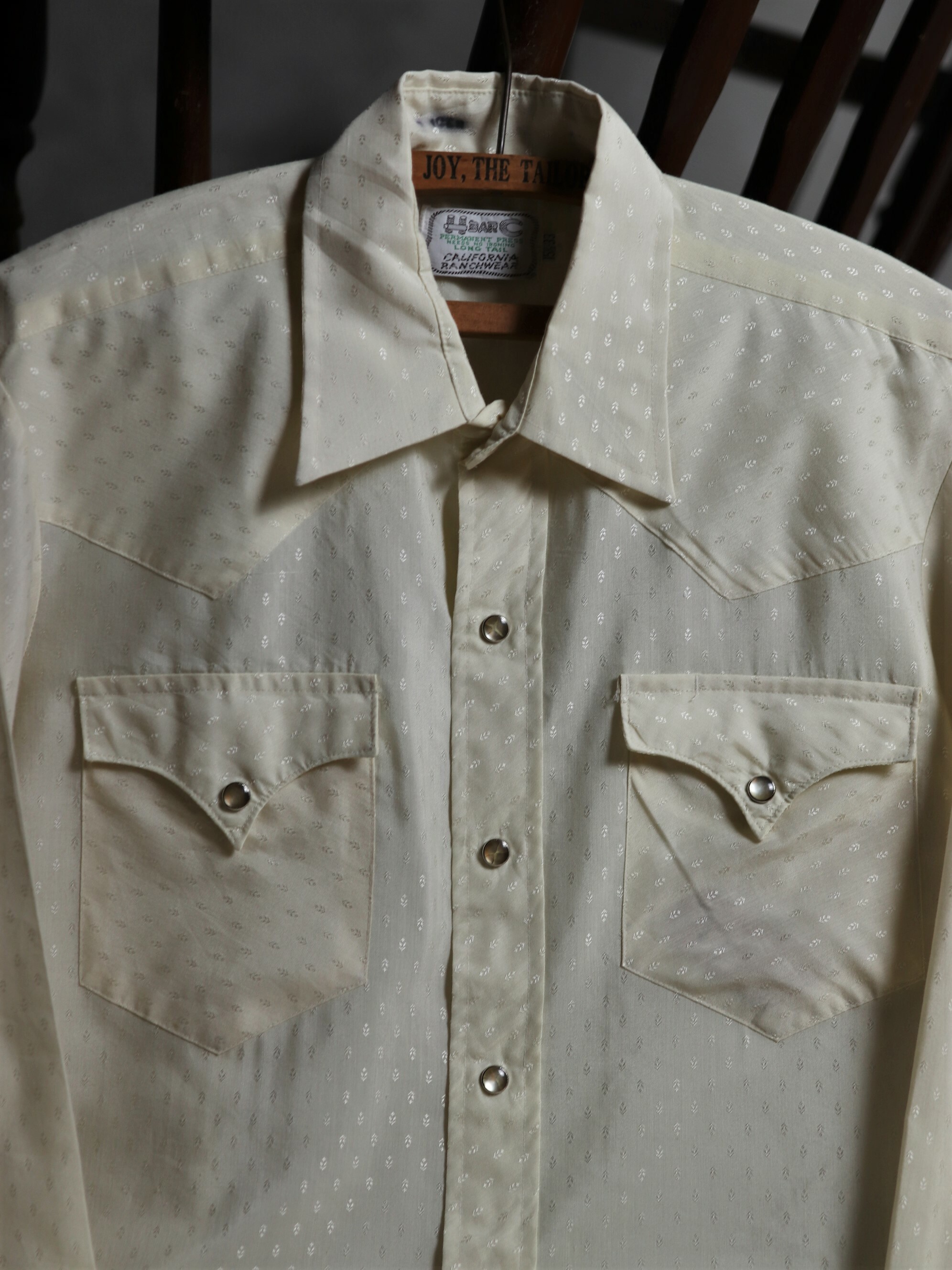 1970年代生產/經典品牌H Bar C/劍領/鵝黃色浮水印/西部襯衫/袖口三排釦/鵝黃色珍珠釦