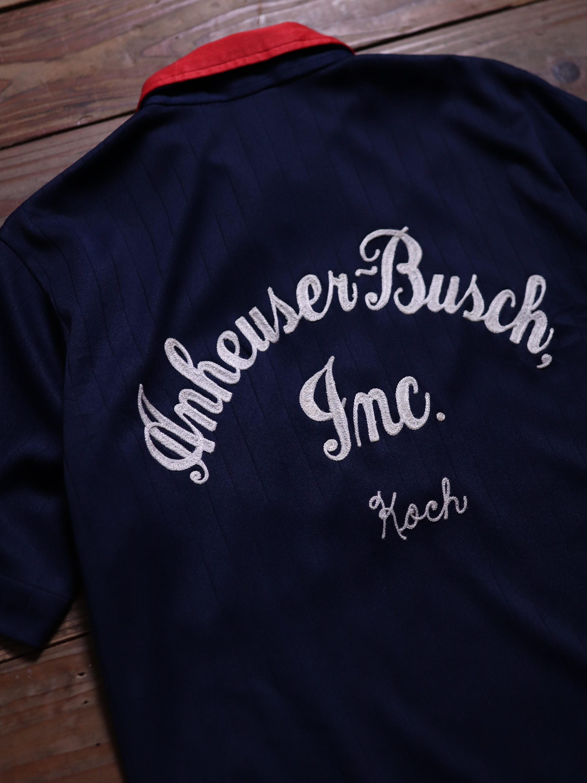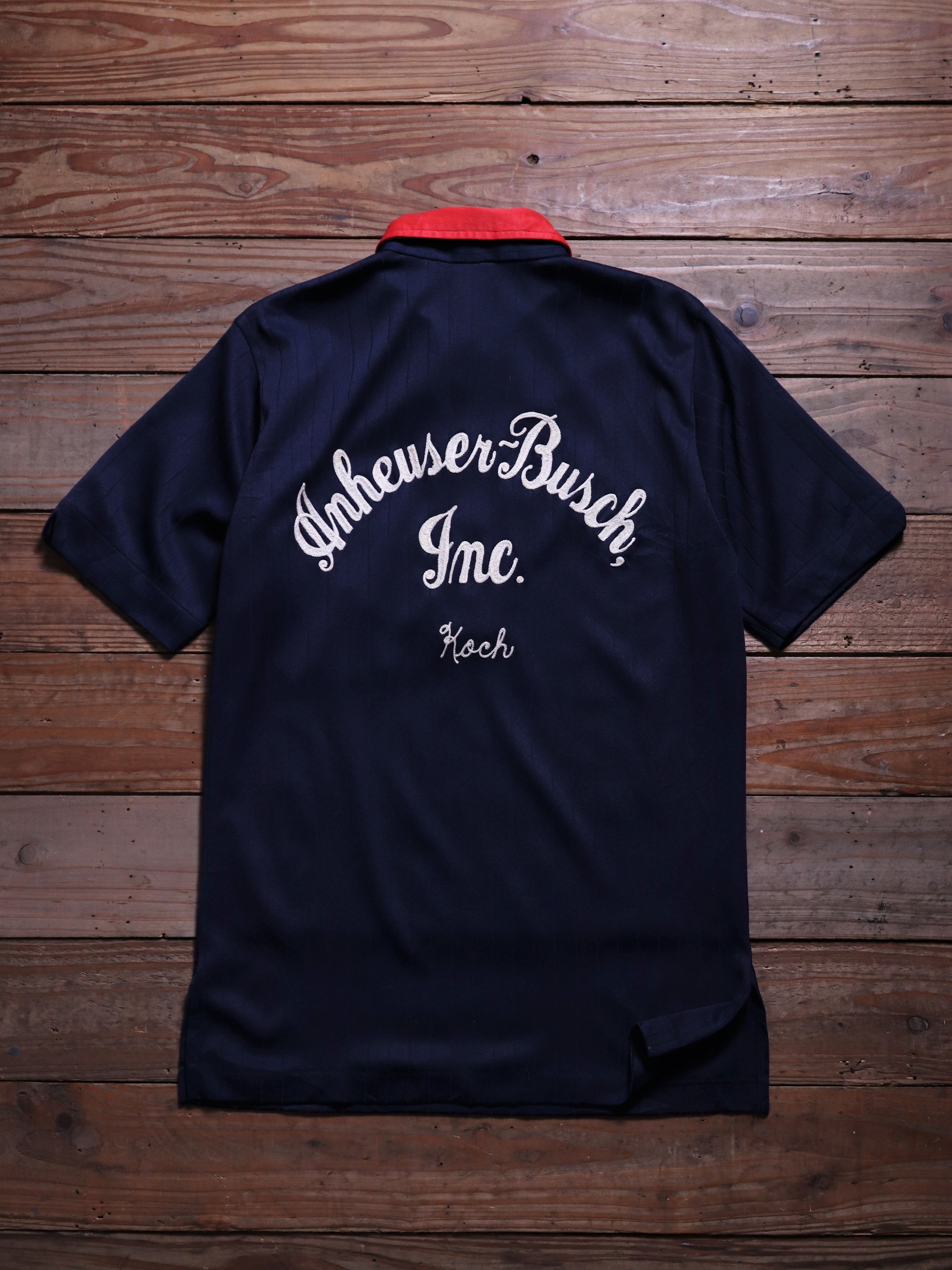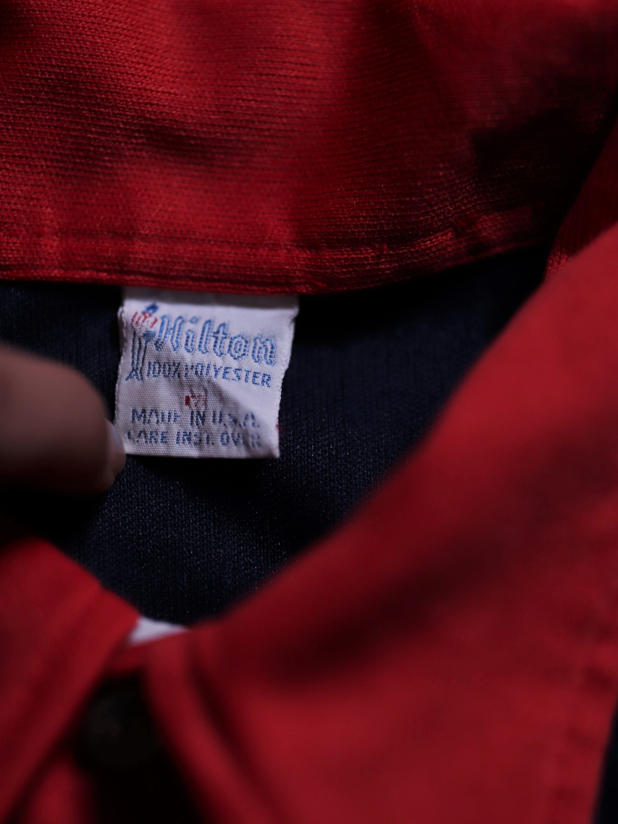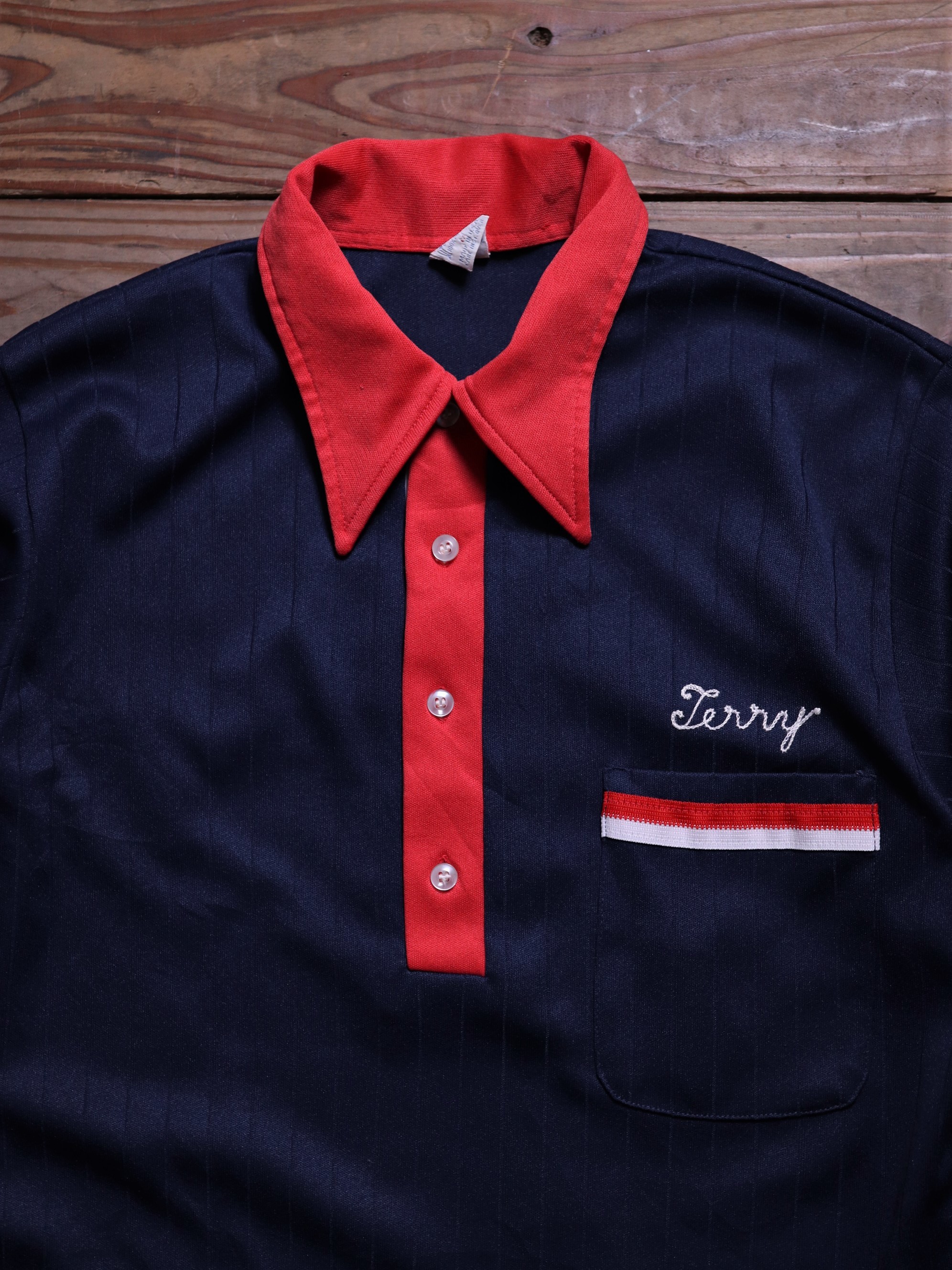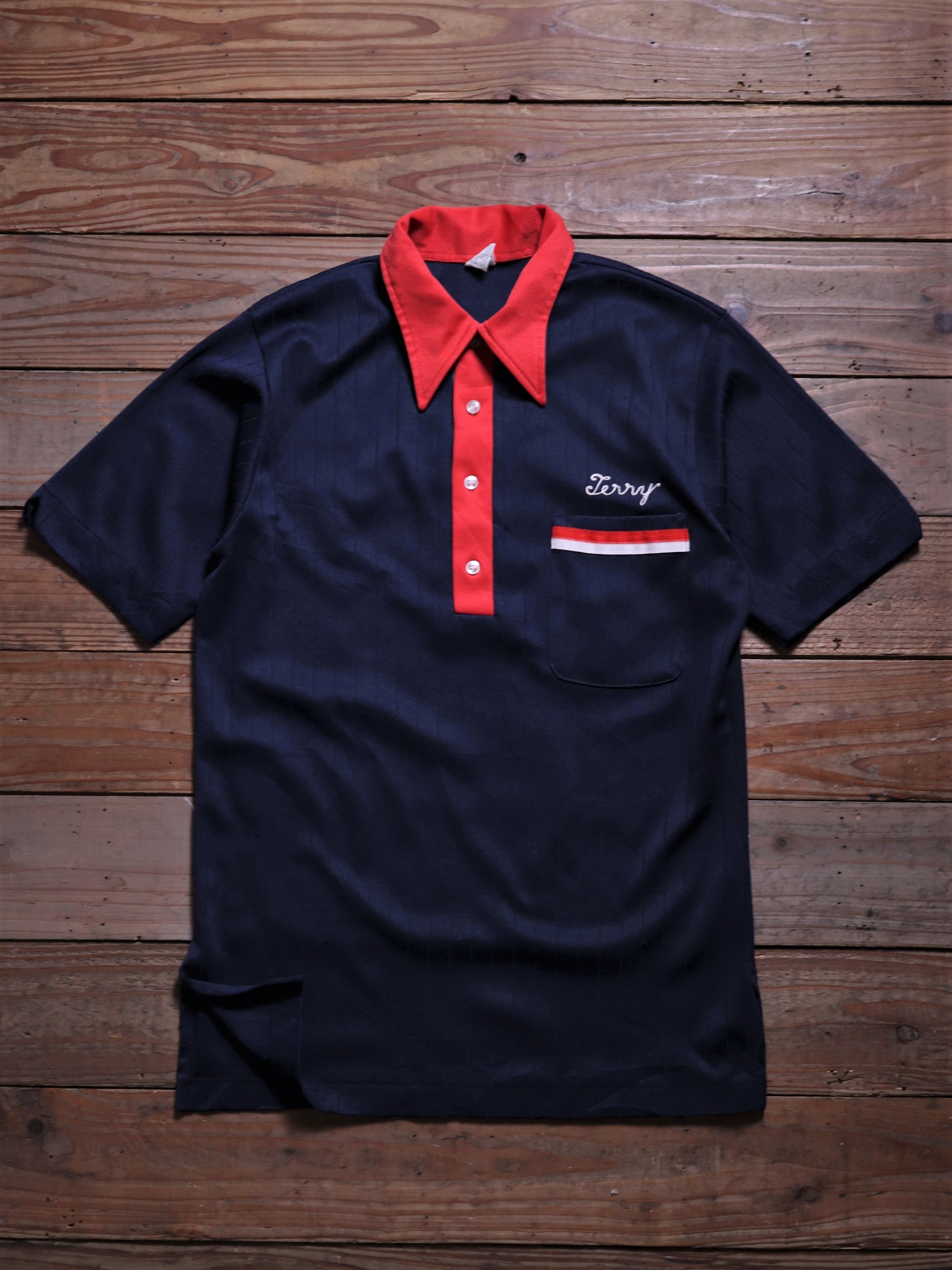 1970年代/美國製/經典保齡球品牌Hilton/背後鎖鏈刺繡Logo/立體條文紋路面料/套頭式襯衫/左胸前口袋