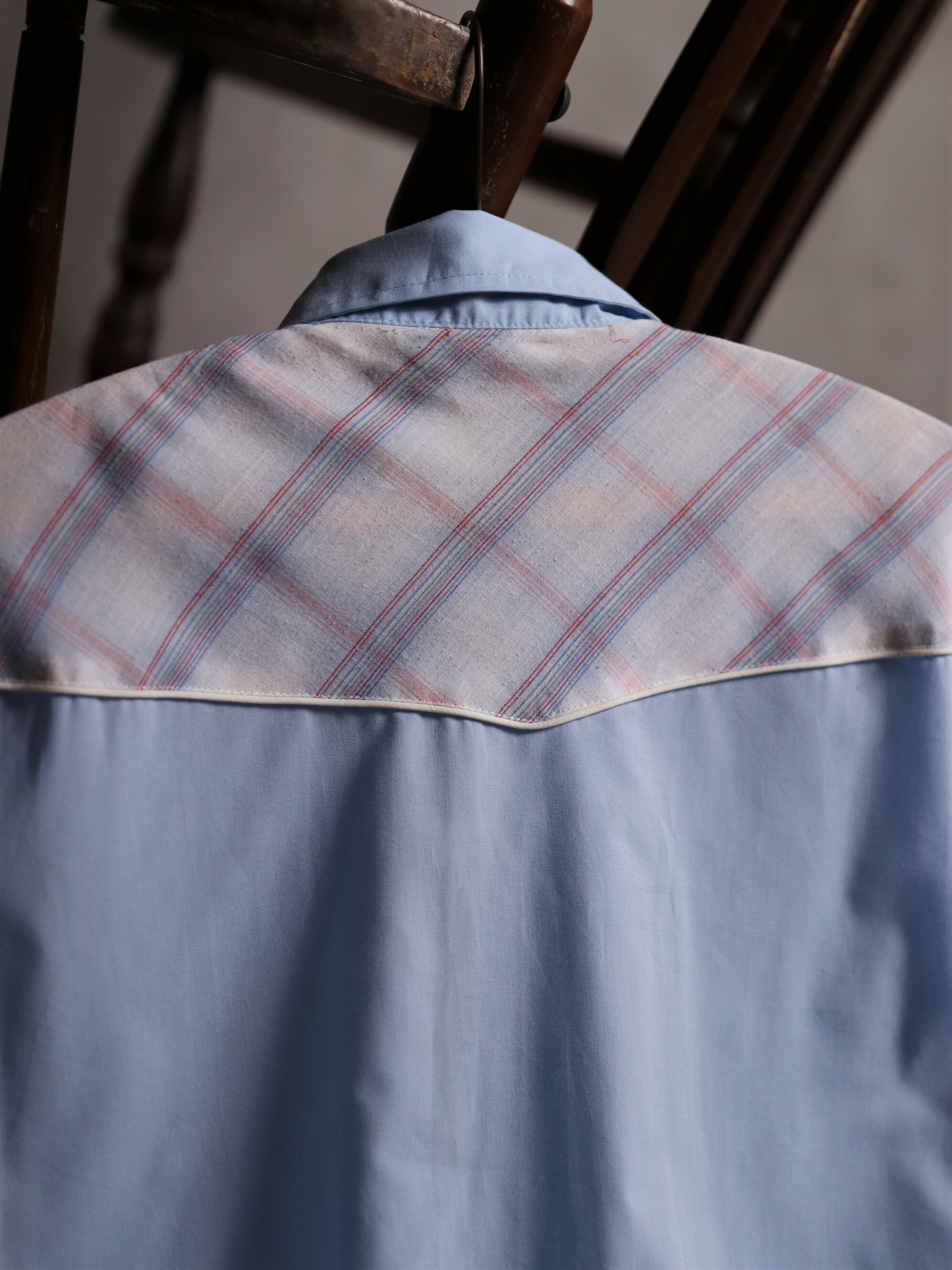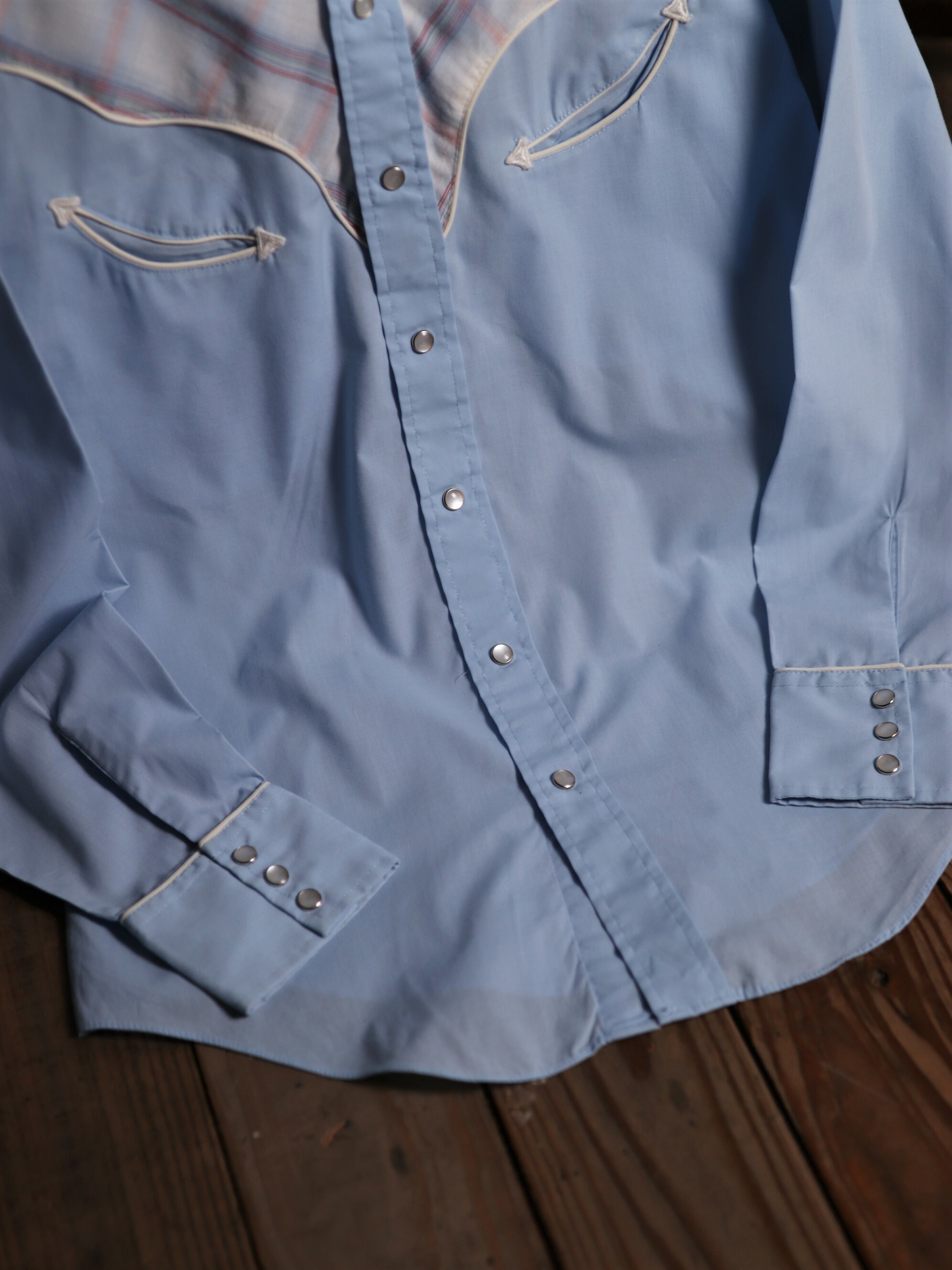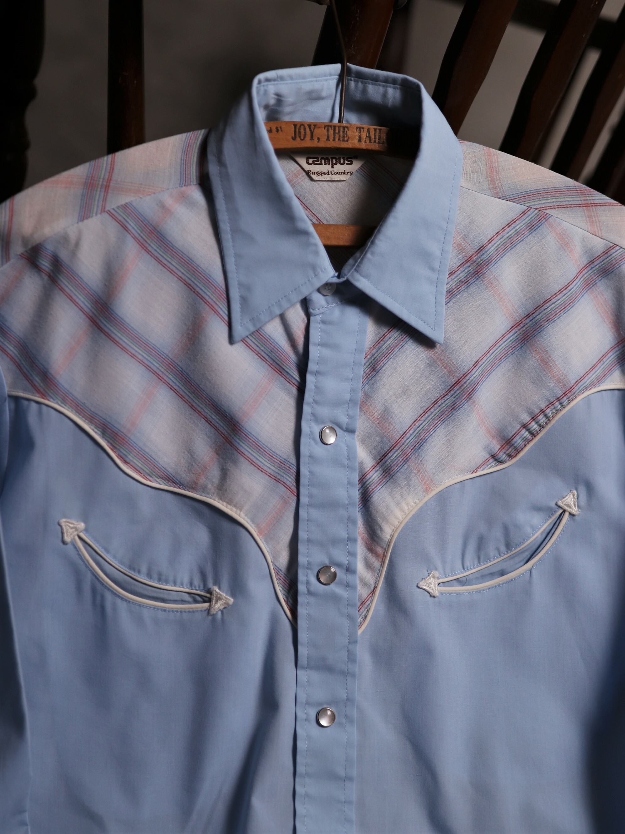 1970年代生產/劍領/西部襯衫/格紋拼接/白色滾邊/袖口三排釦/白色珍珠釦