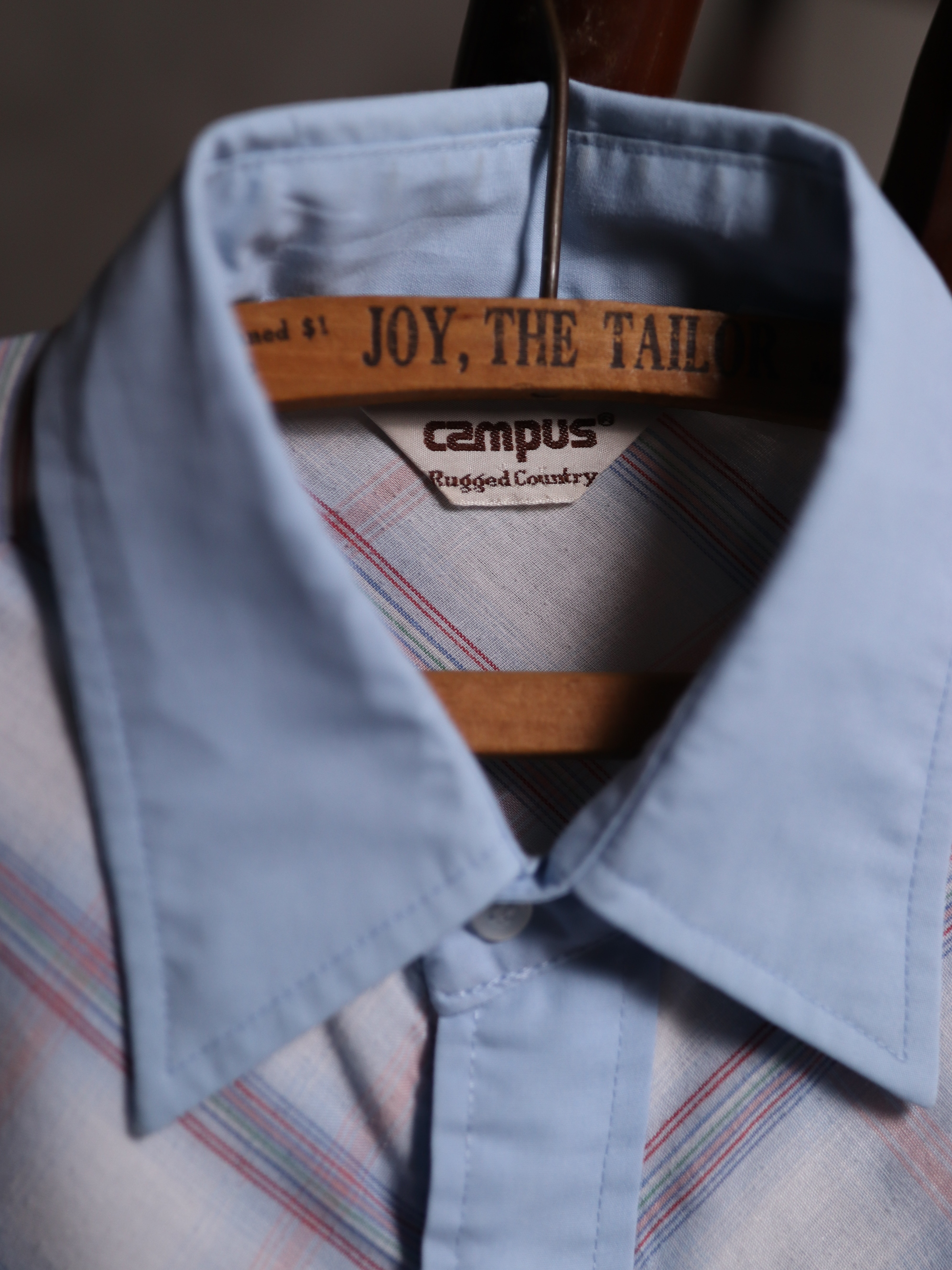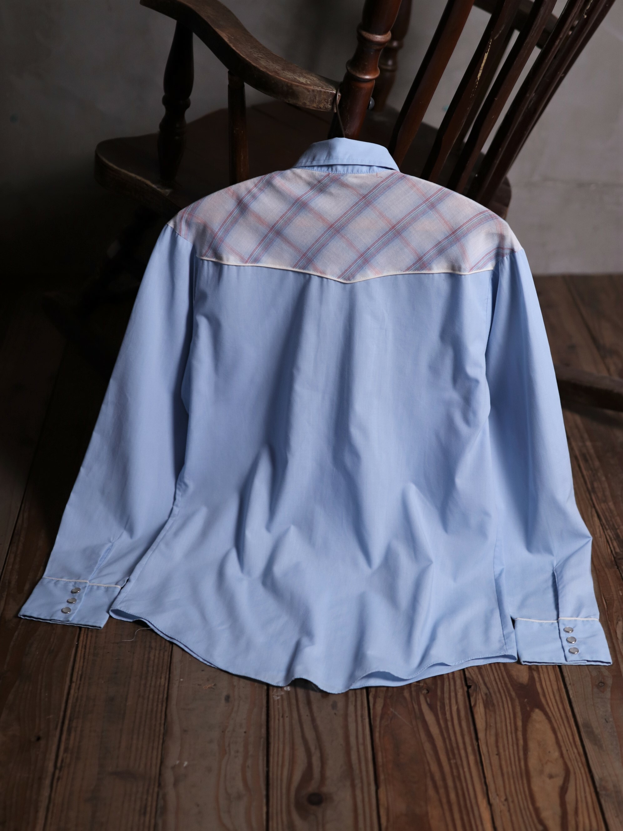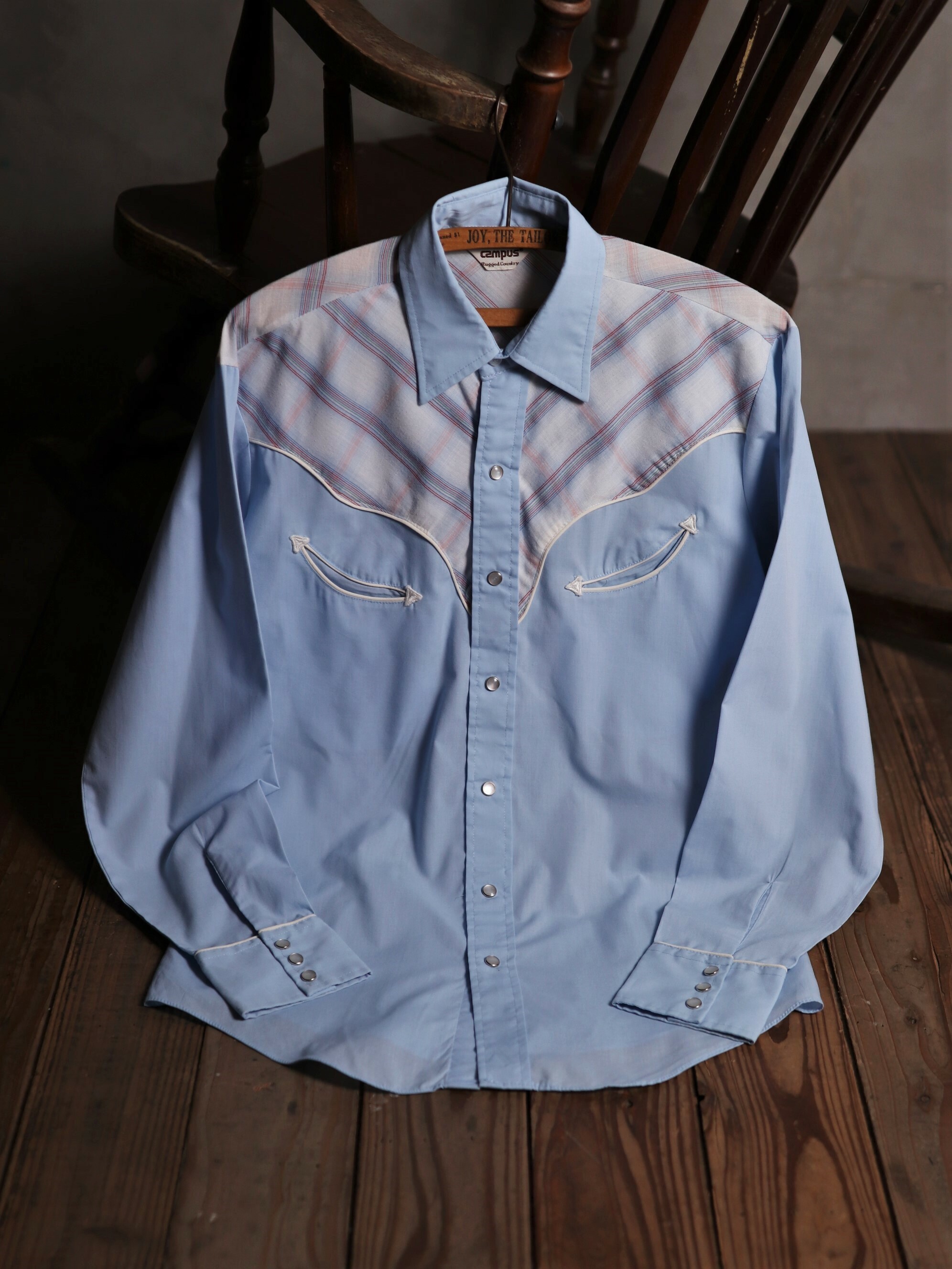 1970年代生產/劍領/西部襯衫/格紋拼接/白色滾邊/袖口三排釦/白色珍珠釦