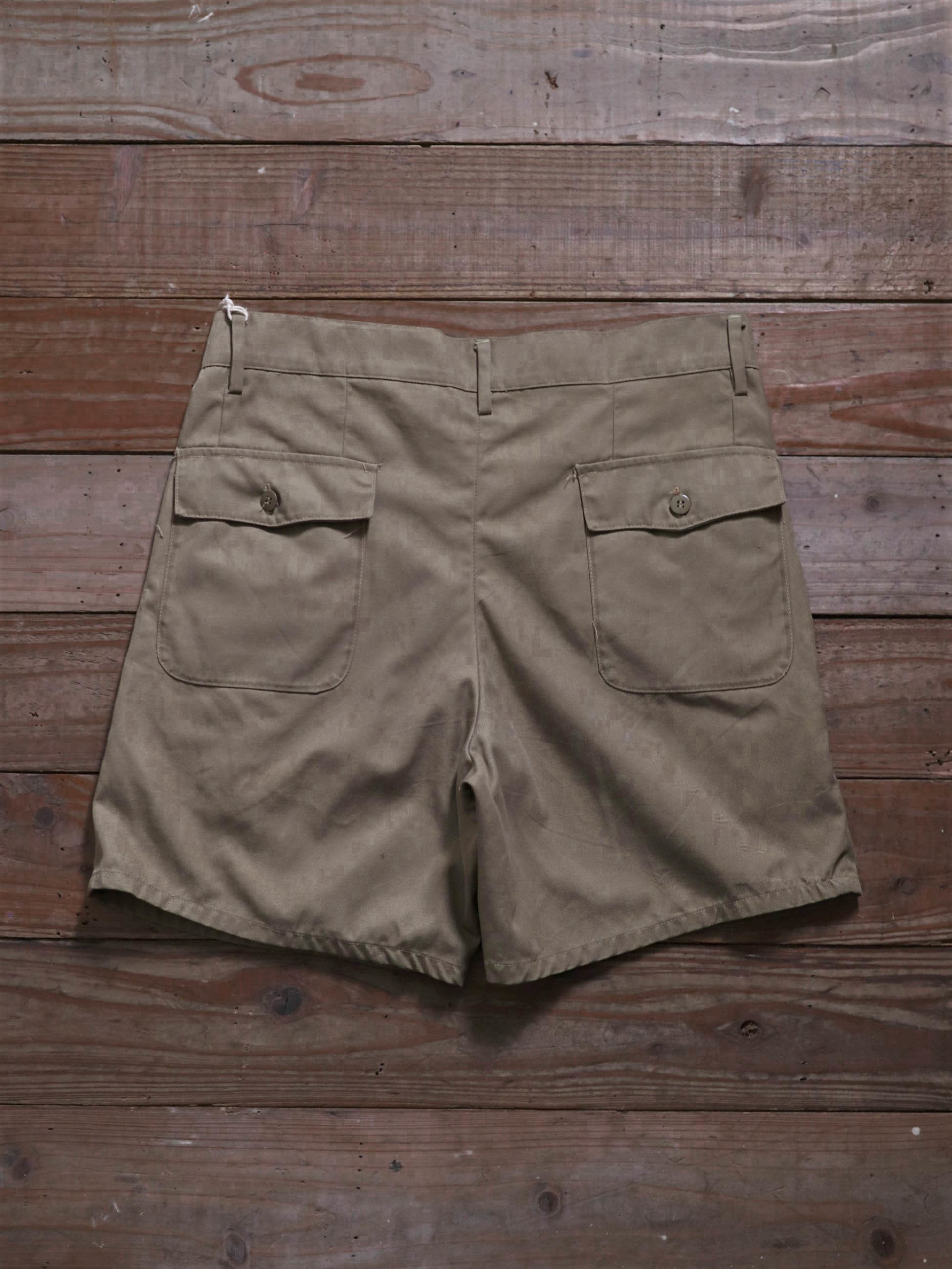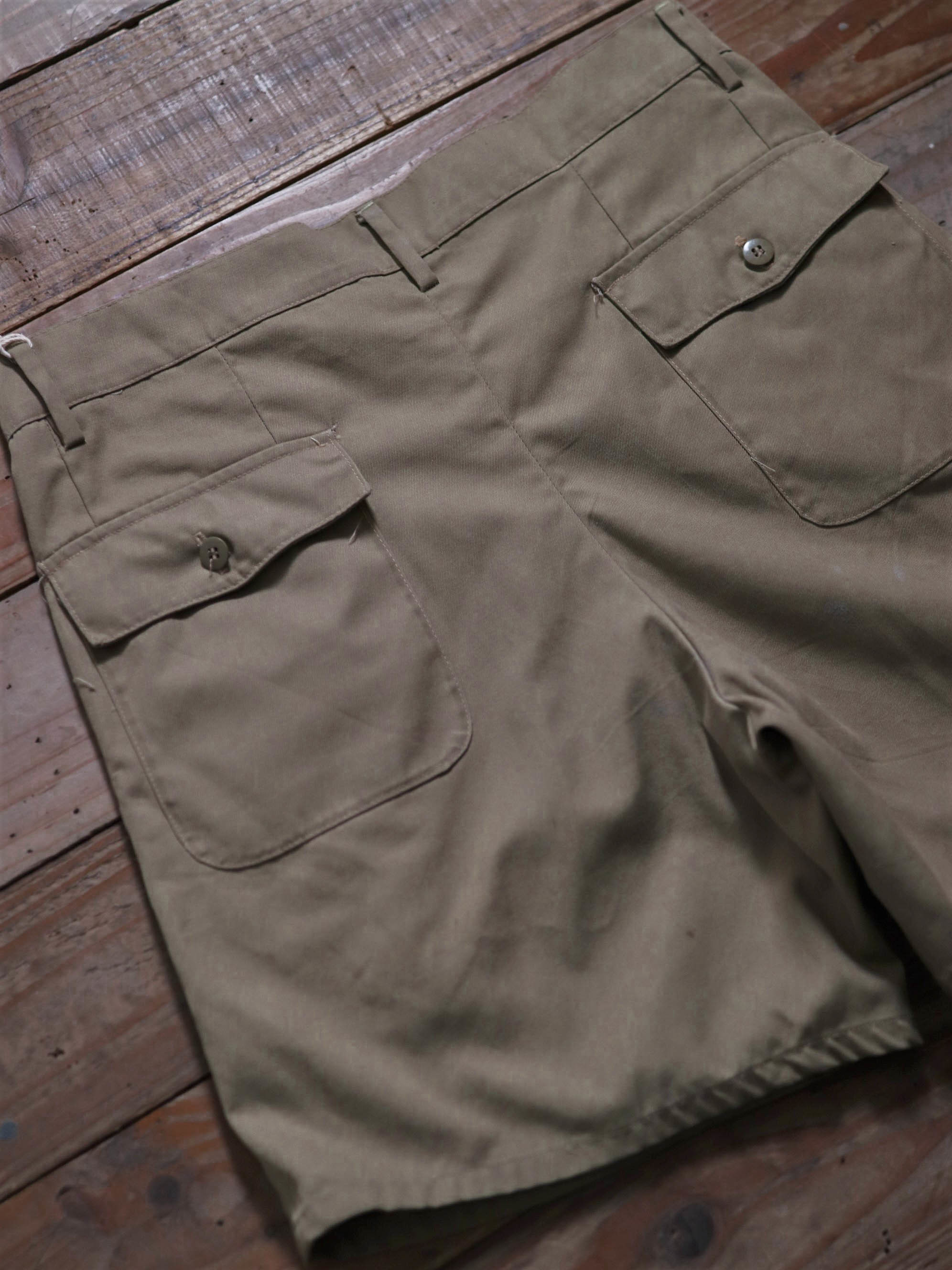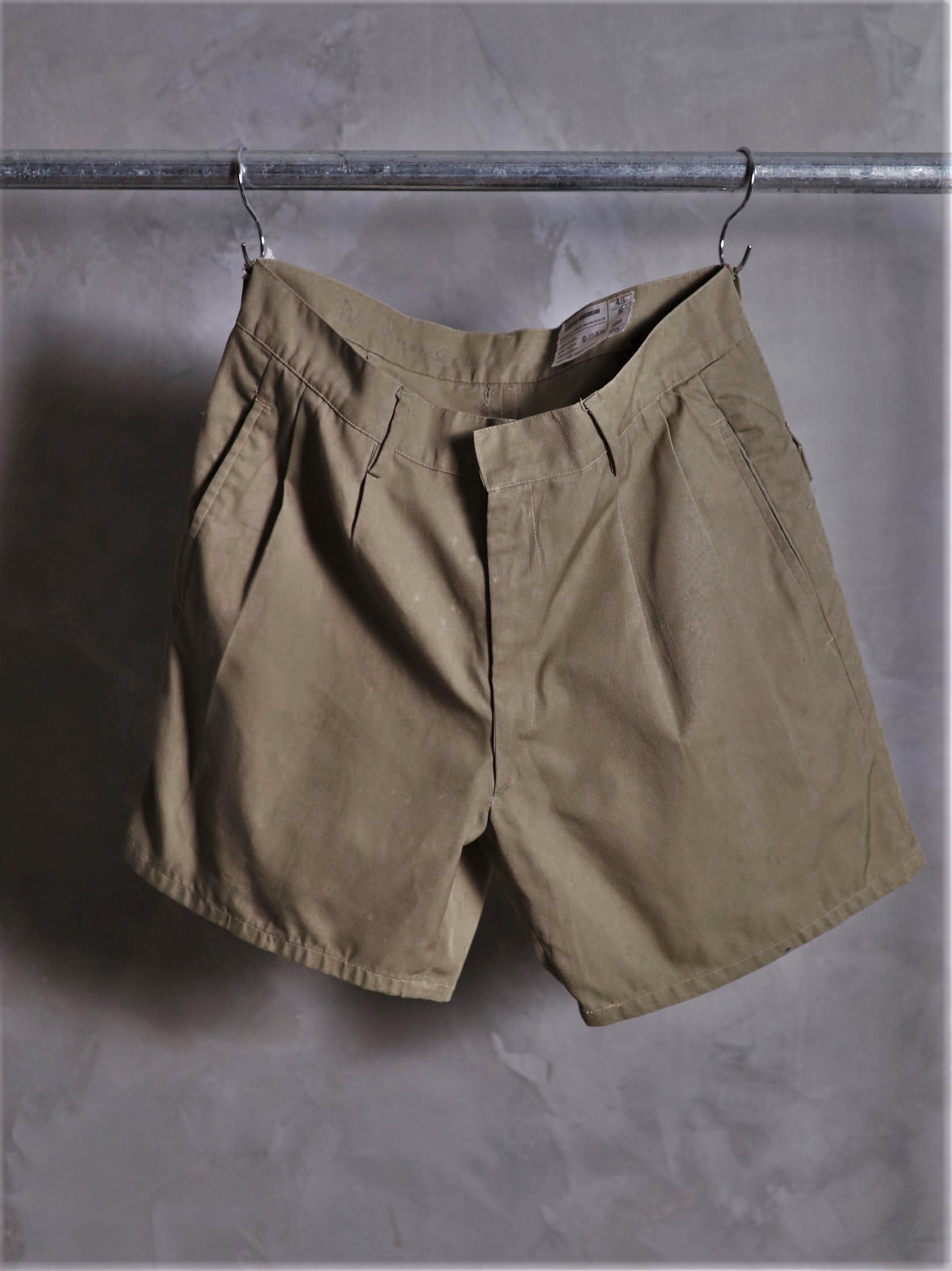 1980年代義大利軍用公發卡其短褲/正面拉鍊釦具/背後兩側口袋/有褲耳可繫腰帶/打摺寬鬆版型