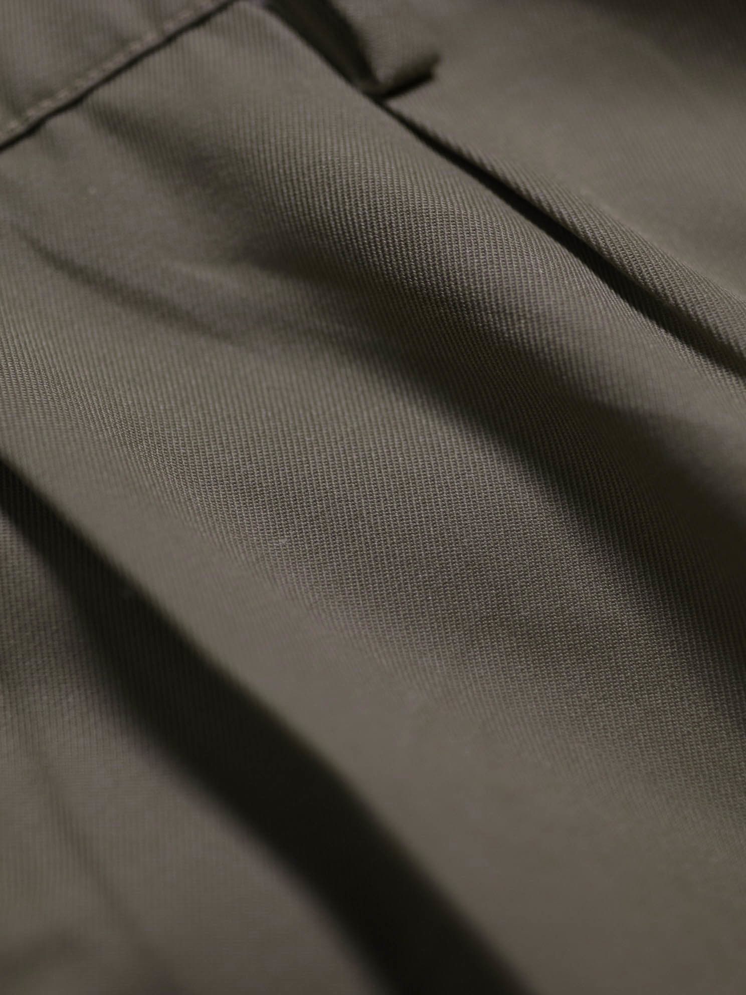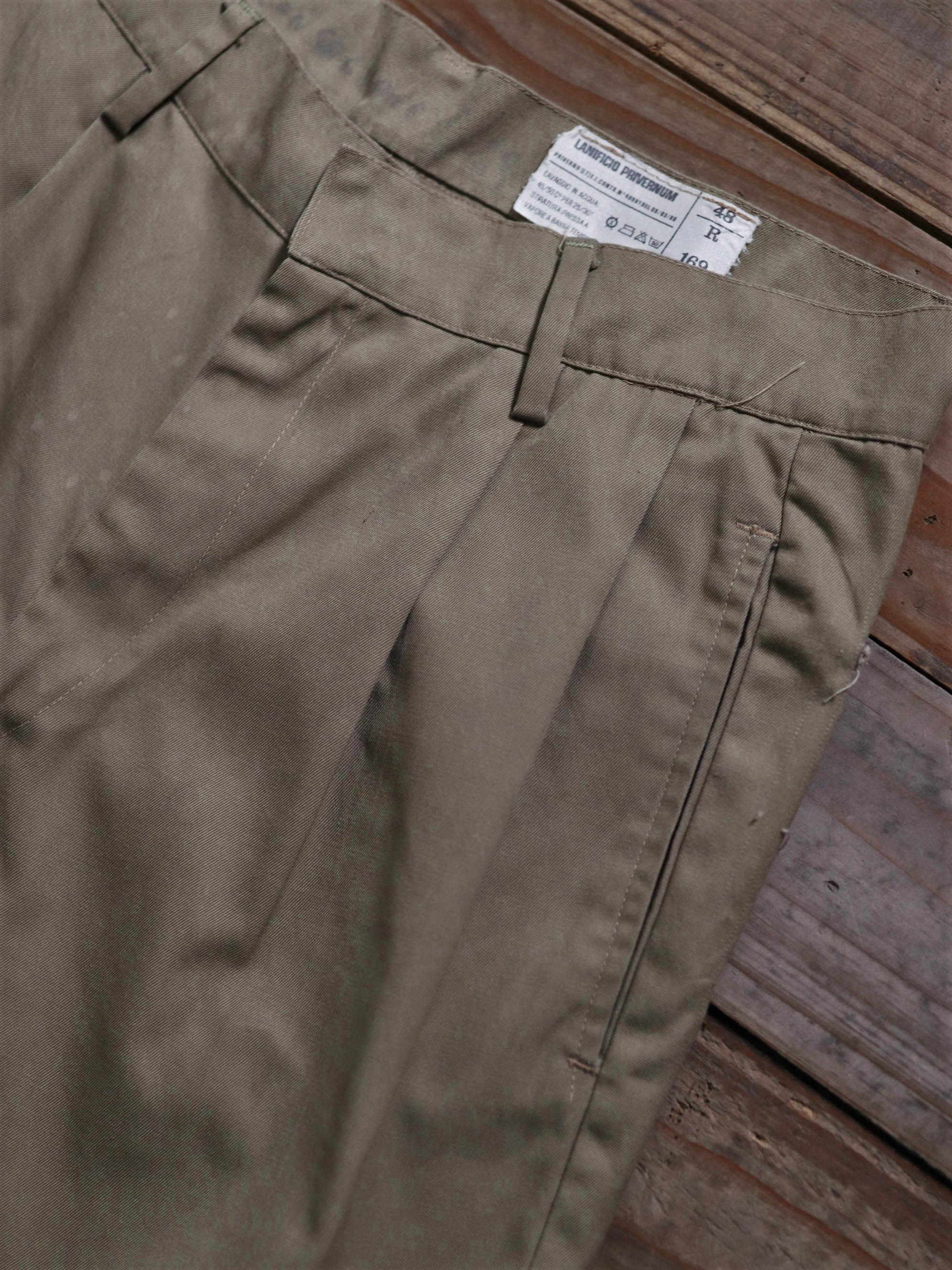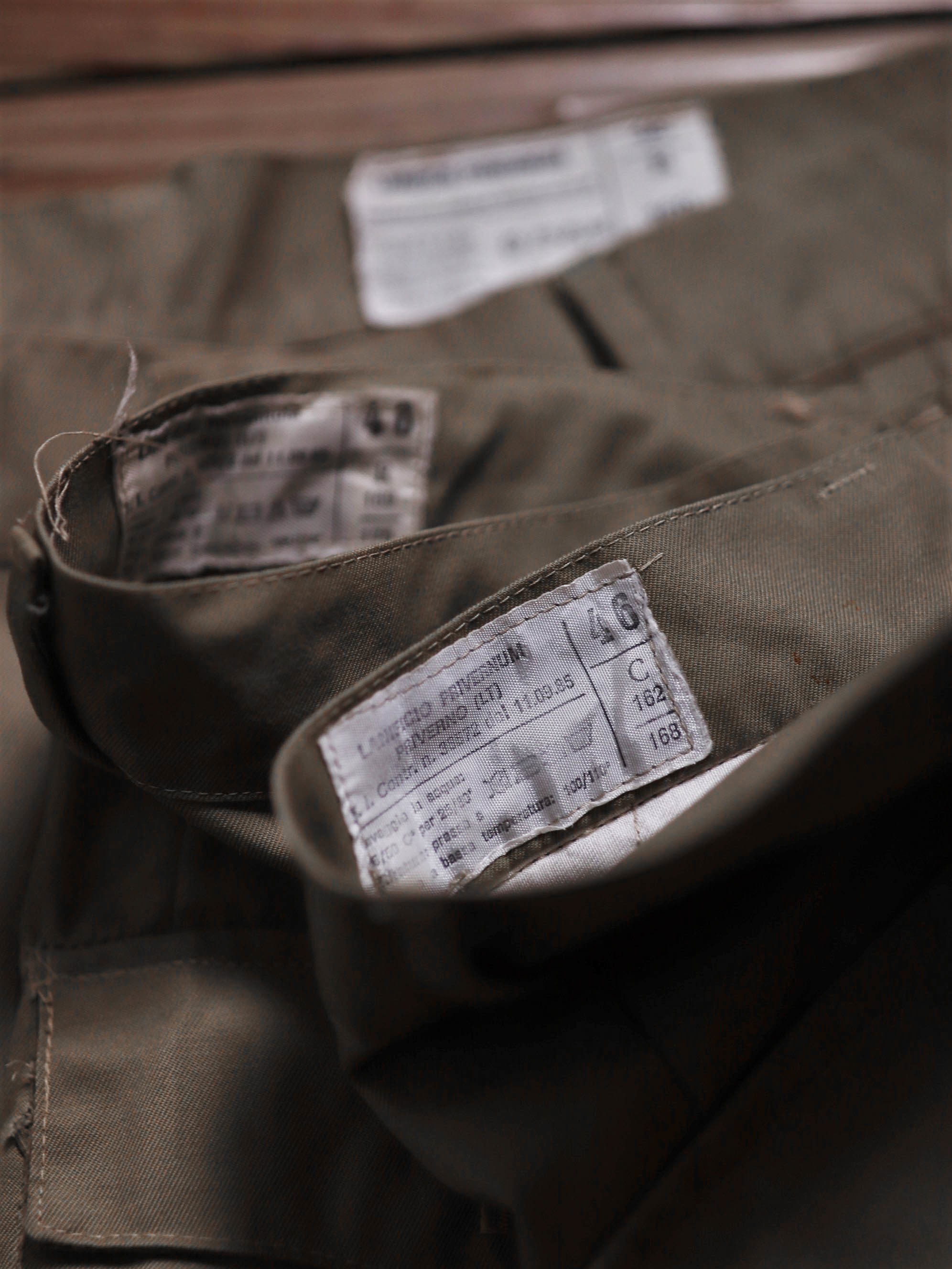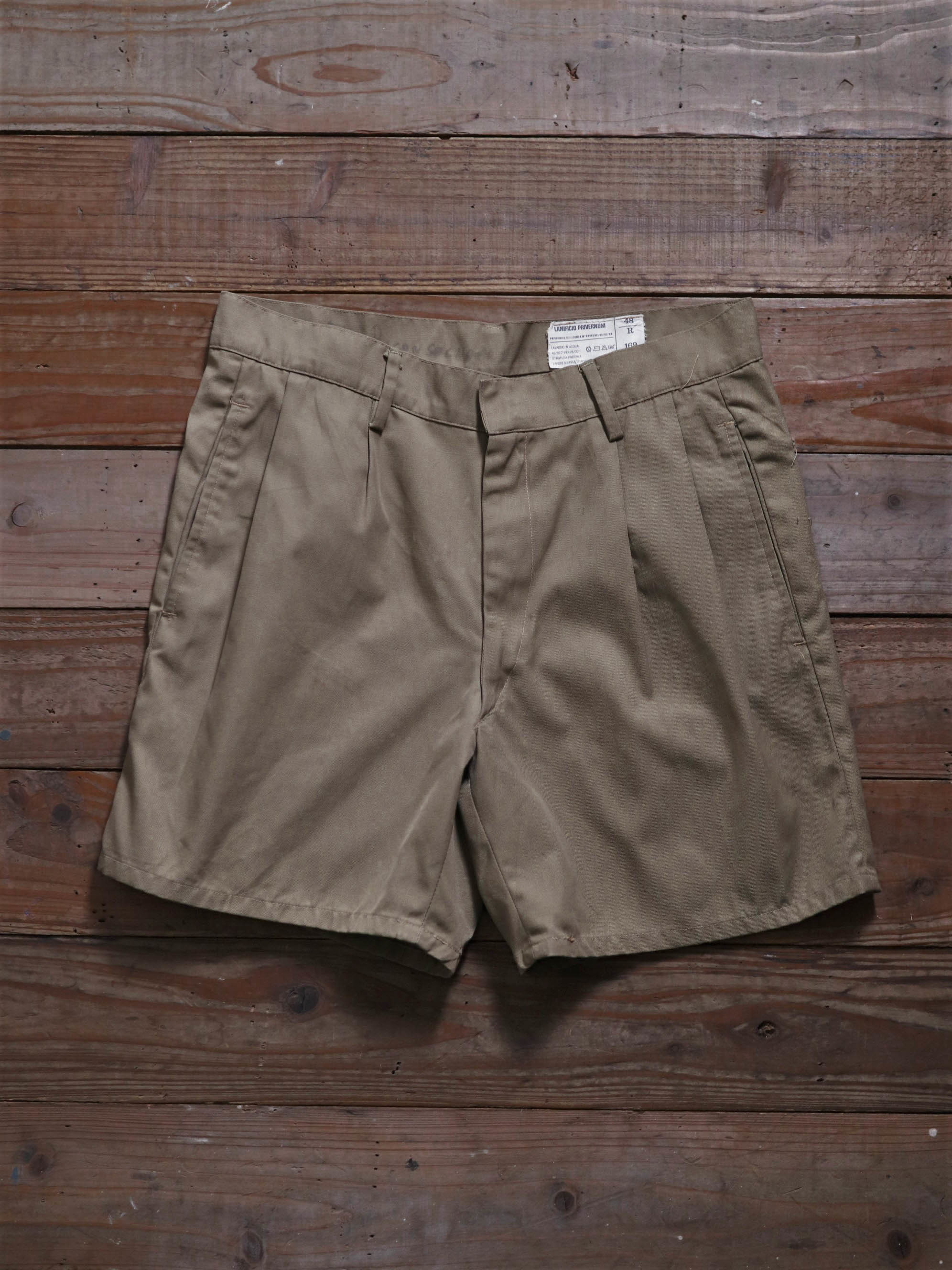 1980年代義大利軍用公發卡其短褲/正面拉鍊釦具/背後兩側口袋/有褲耳可繫腰帶/打摺寬鬆版型
