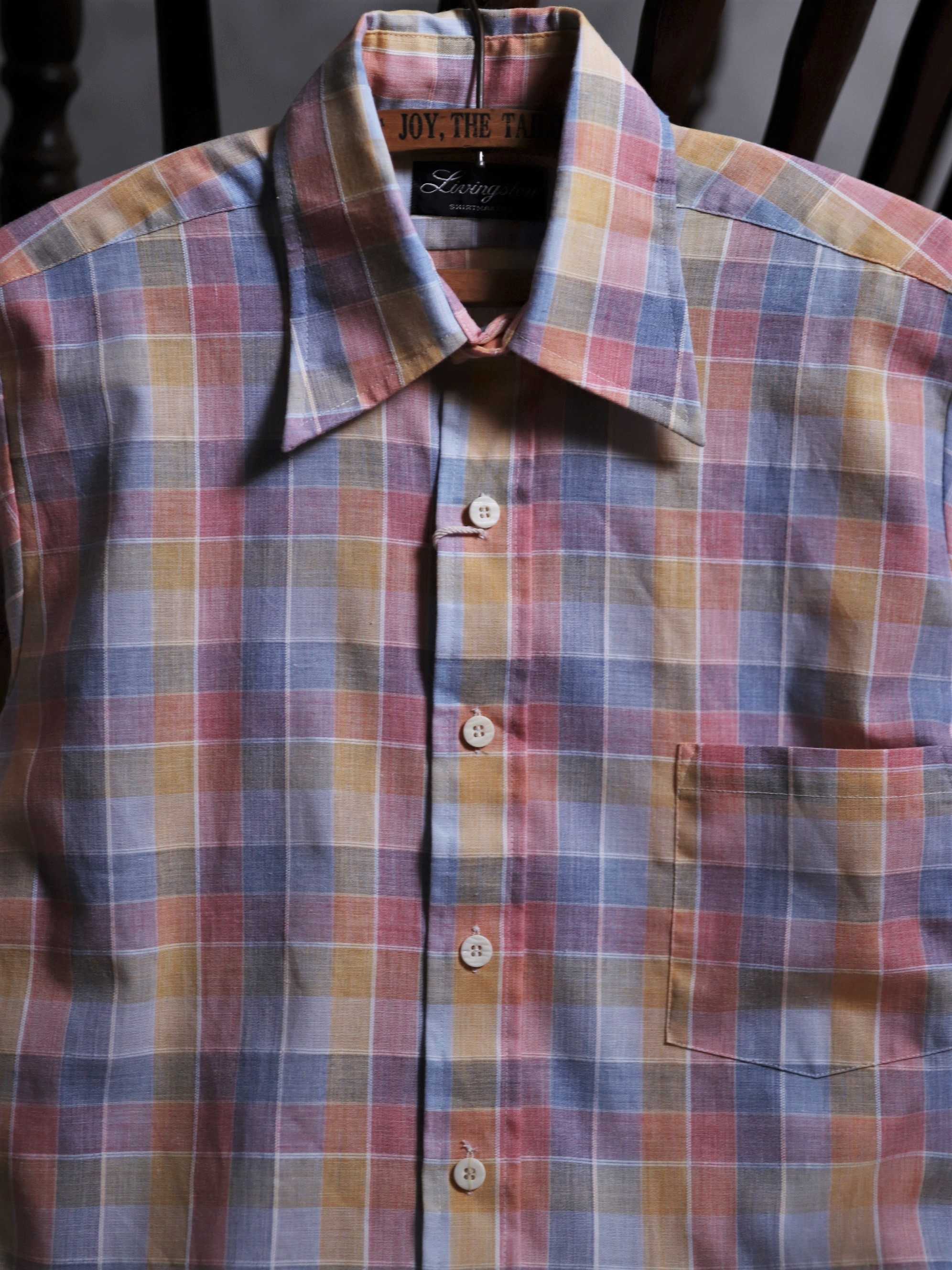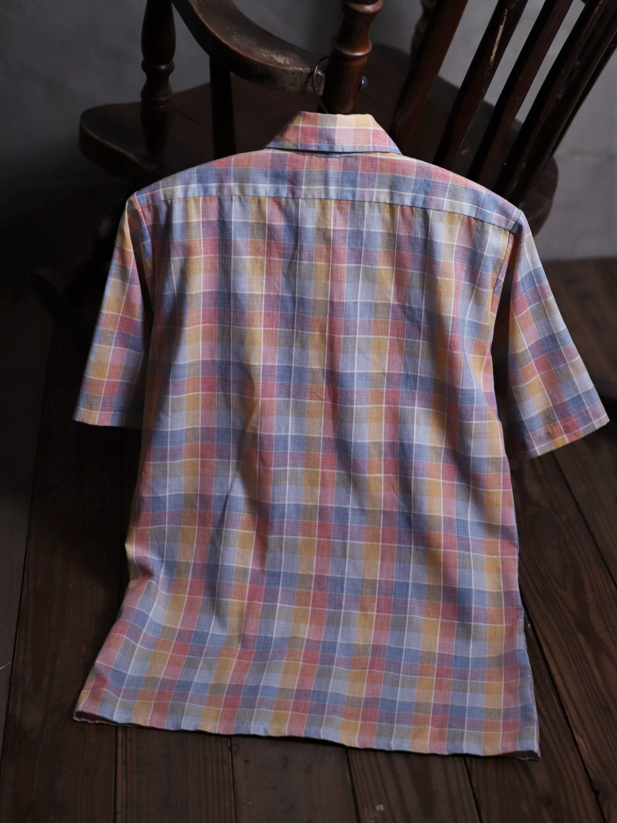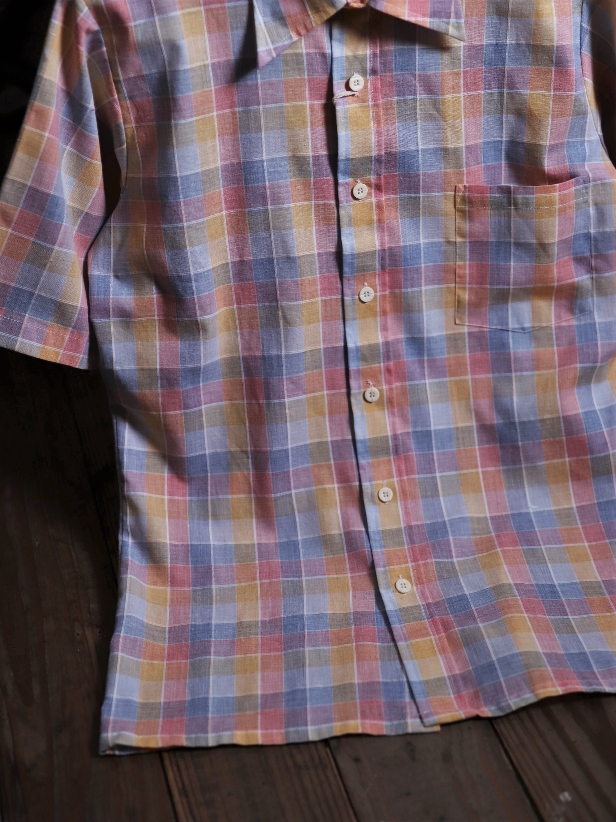 1980年代生產/採色格紋立體織紋印花/劍領襯衫/左胸前口袋/口袋對花
