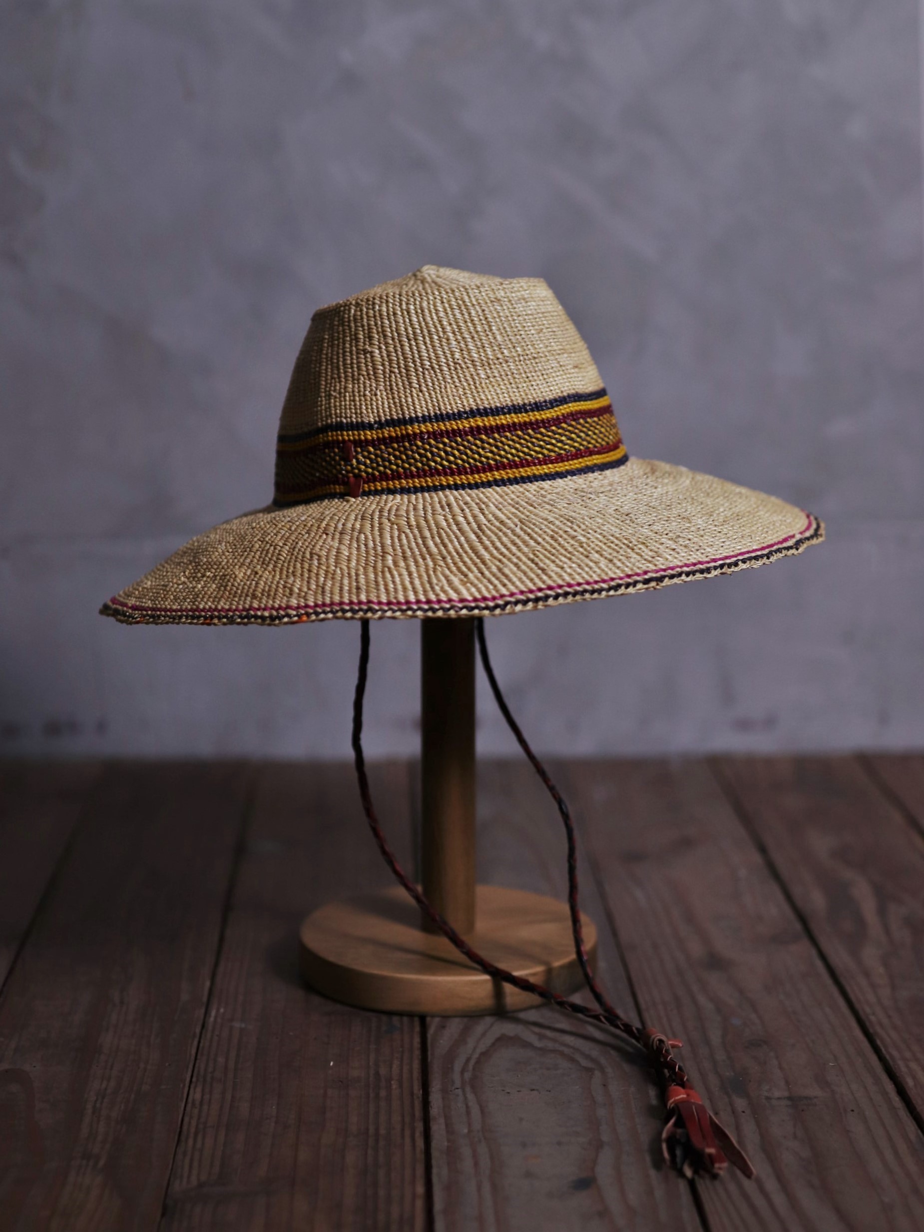 非洲手工編織草帽/彩色圖騰編織/手工編織/皮革編織流蘇綁帶