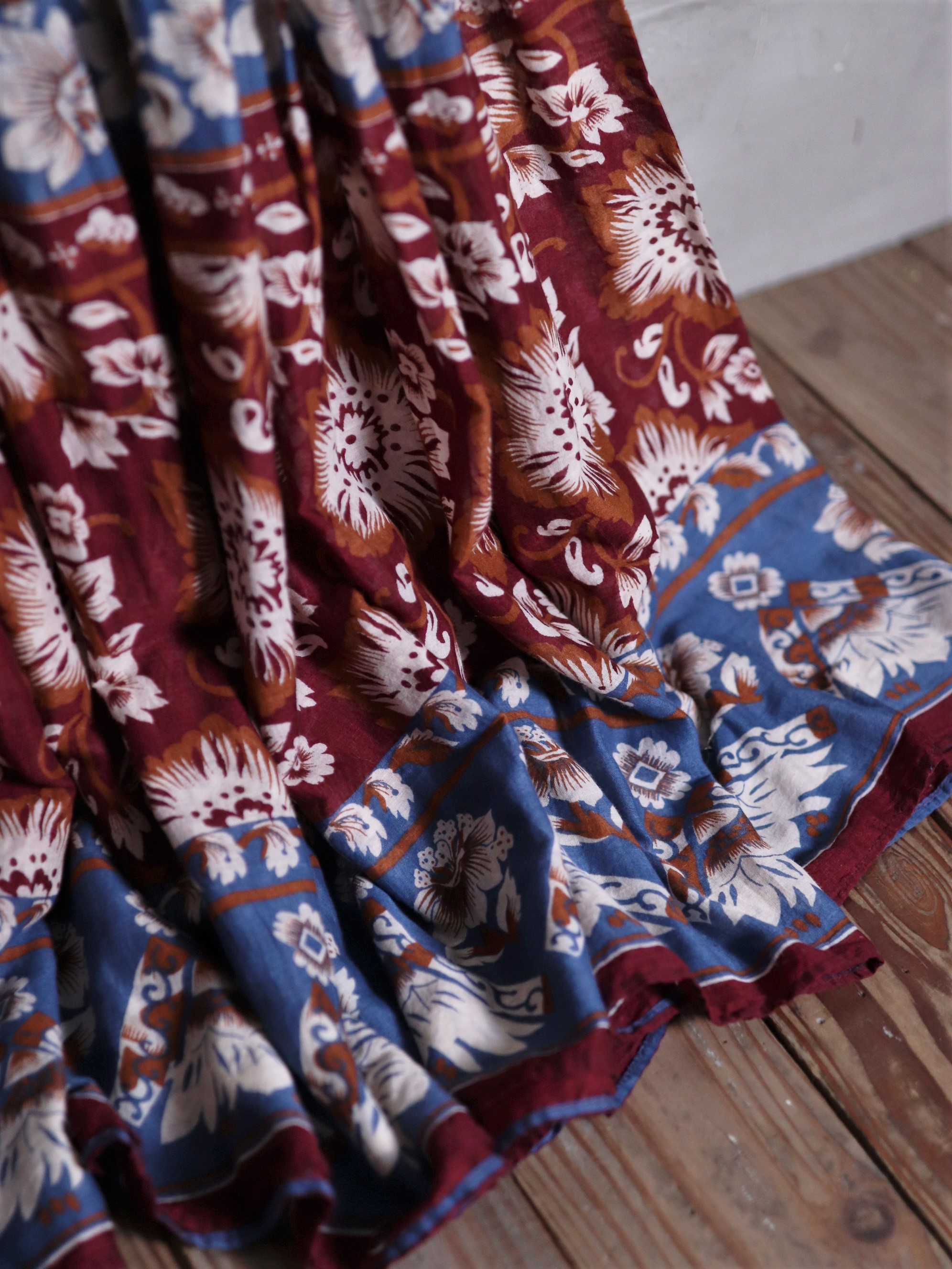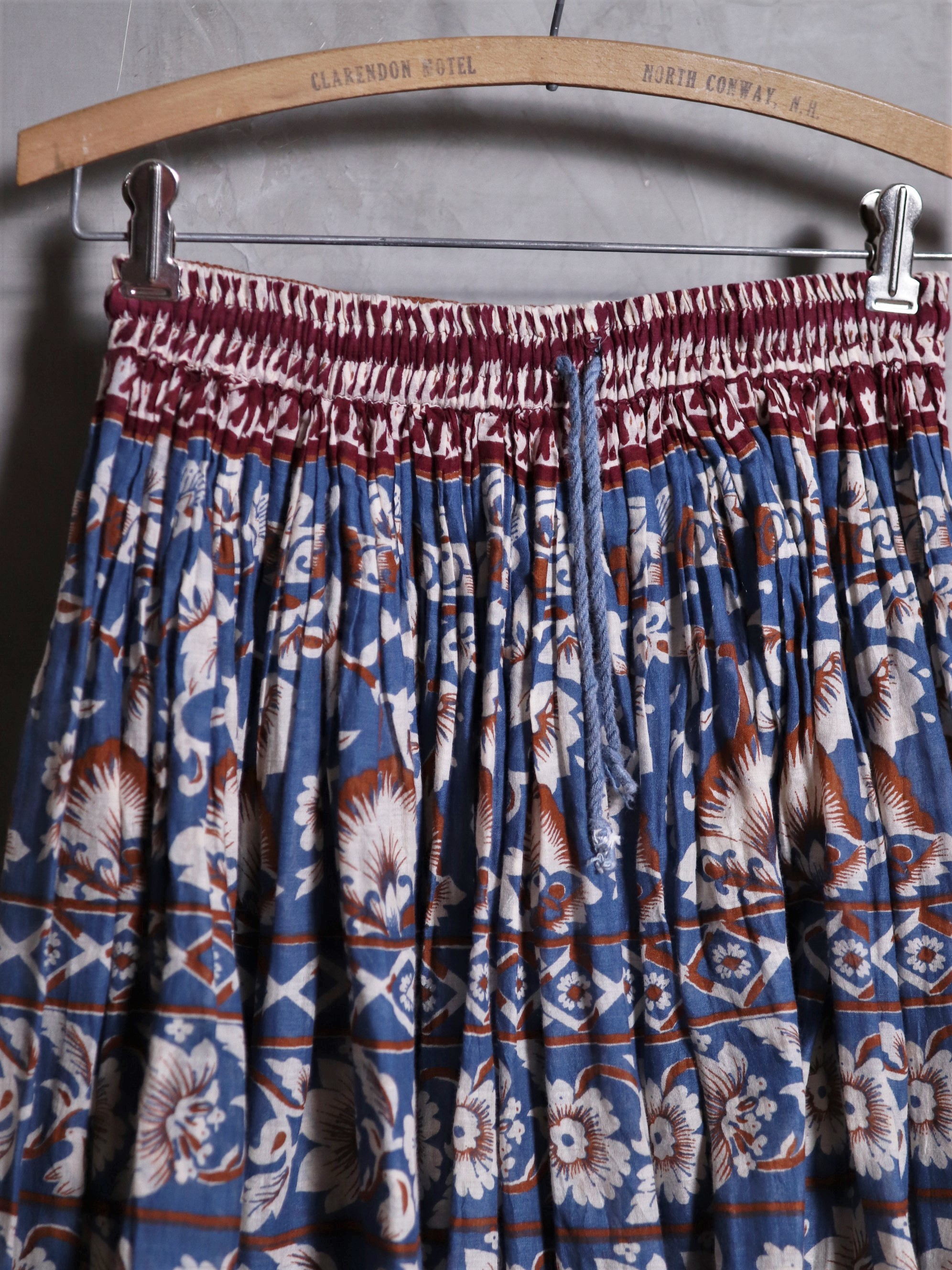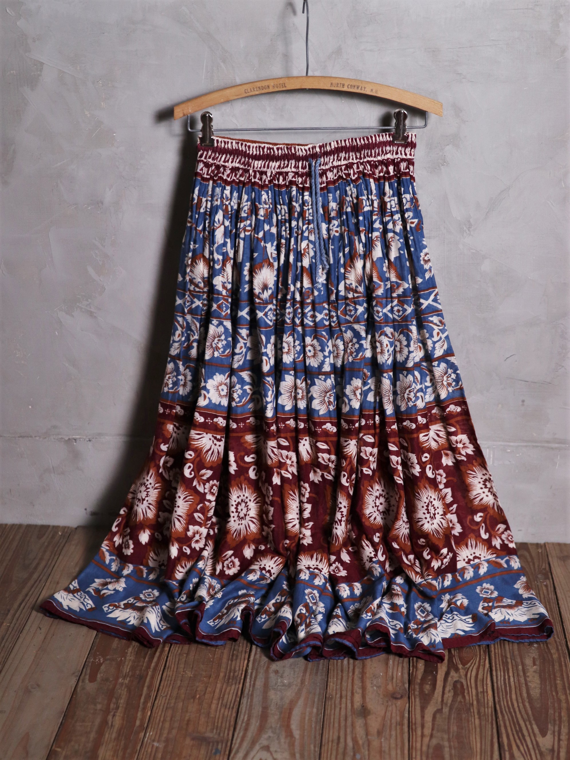 印度棉印花圖騰綁帶裙/彈性腰圍/腰部綁帶/傘狀長裙