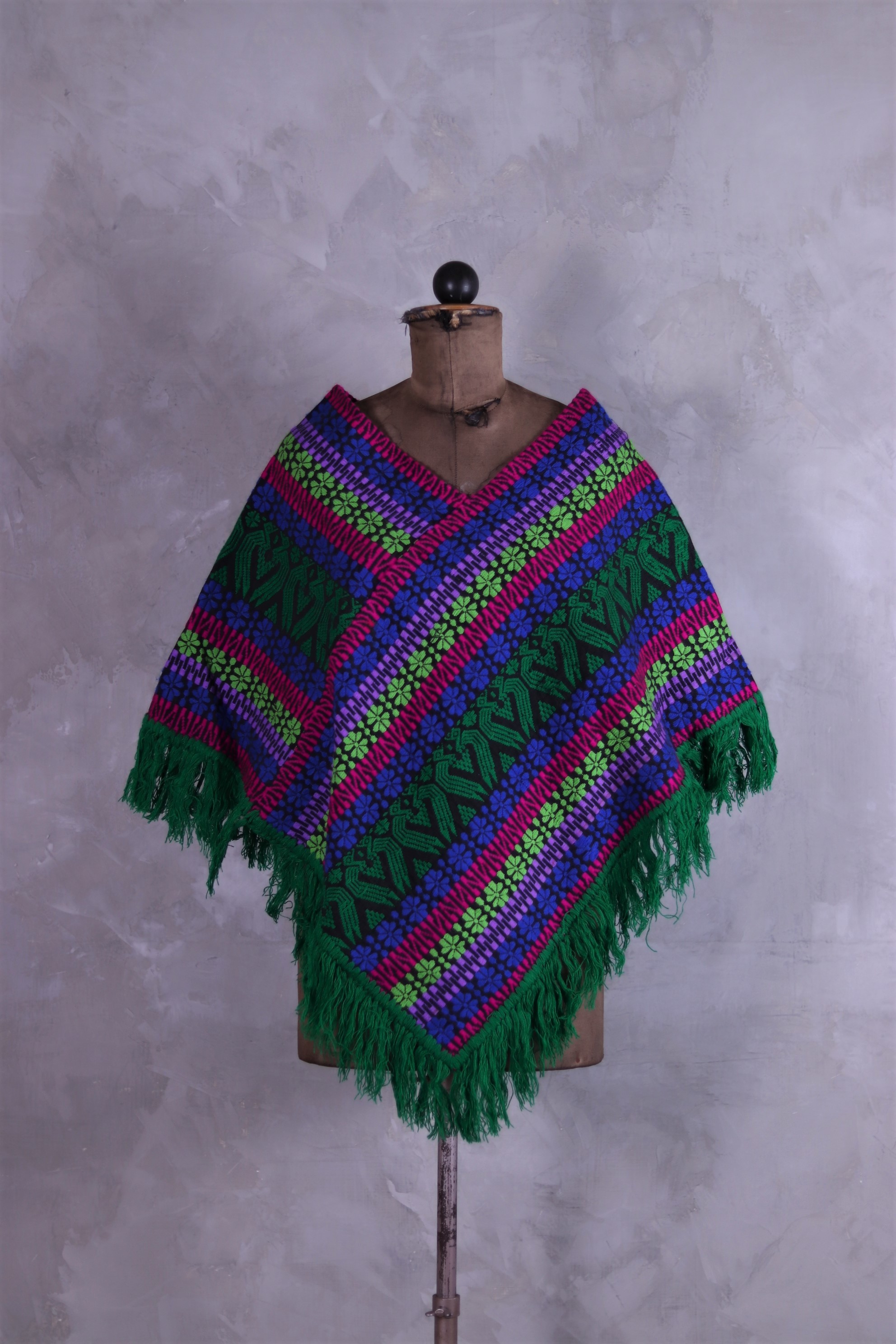 瓜地馬拉傳統斗篷/手工刺繡/流蘇/彩色圖騰