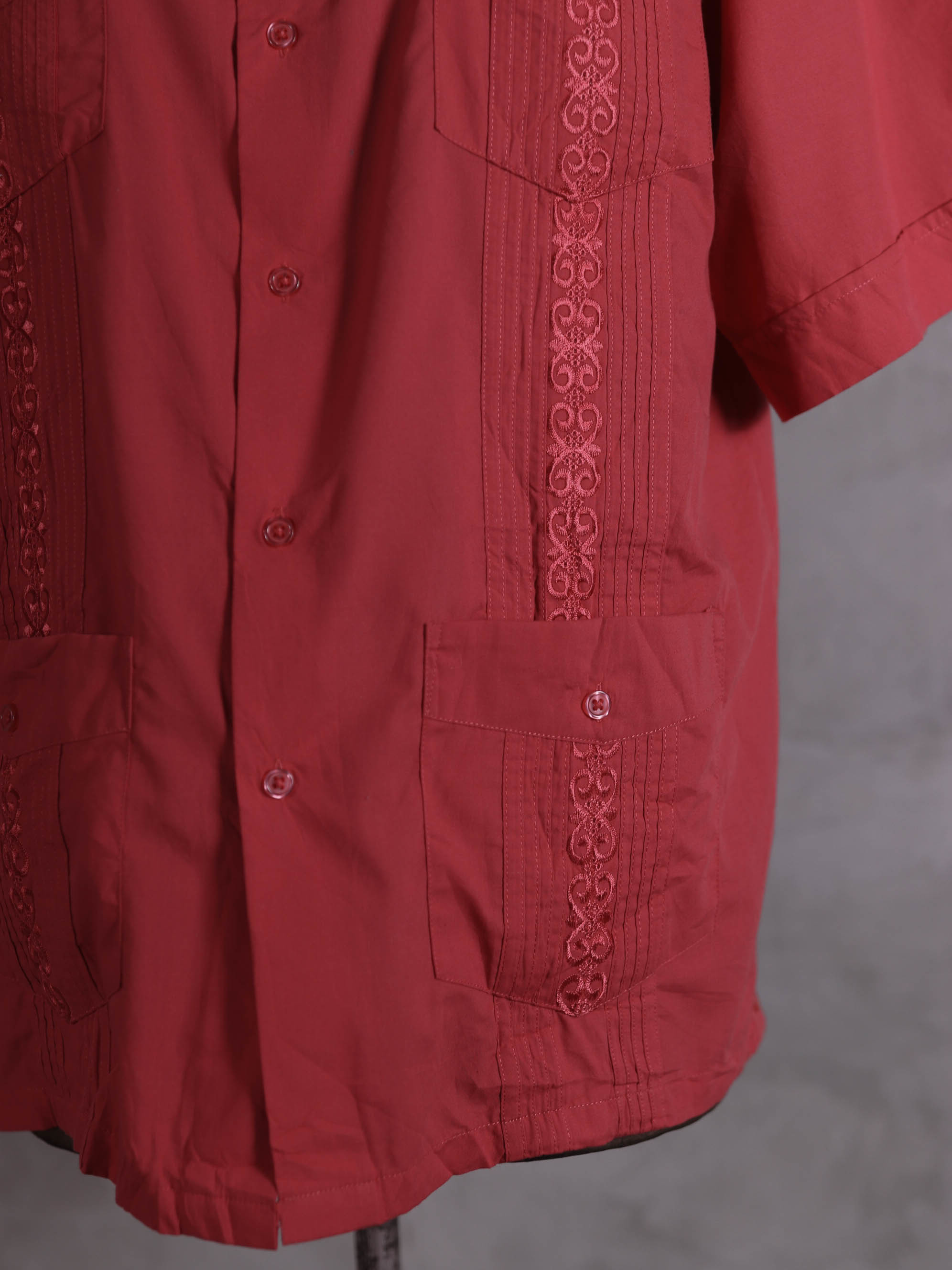 古巴襯衫/刺繡/打摺/經典四口袋/下擺開岔