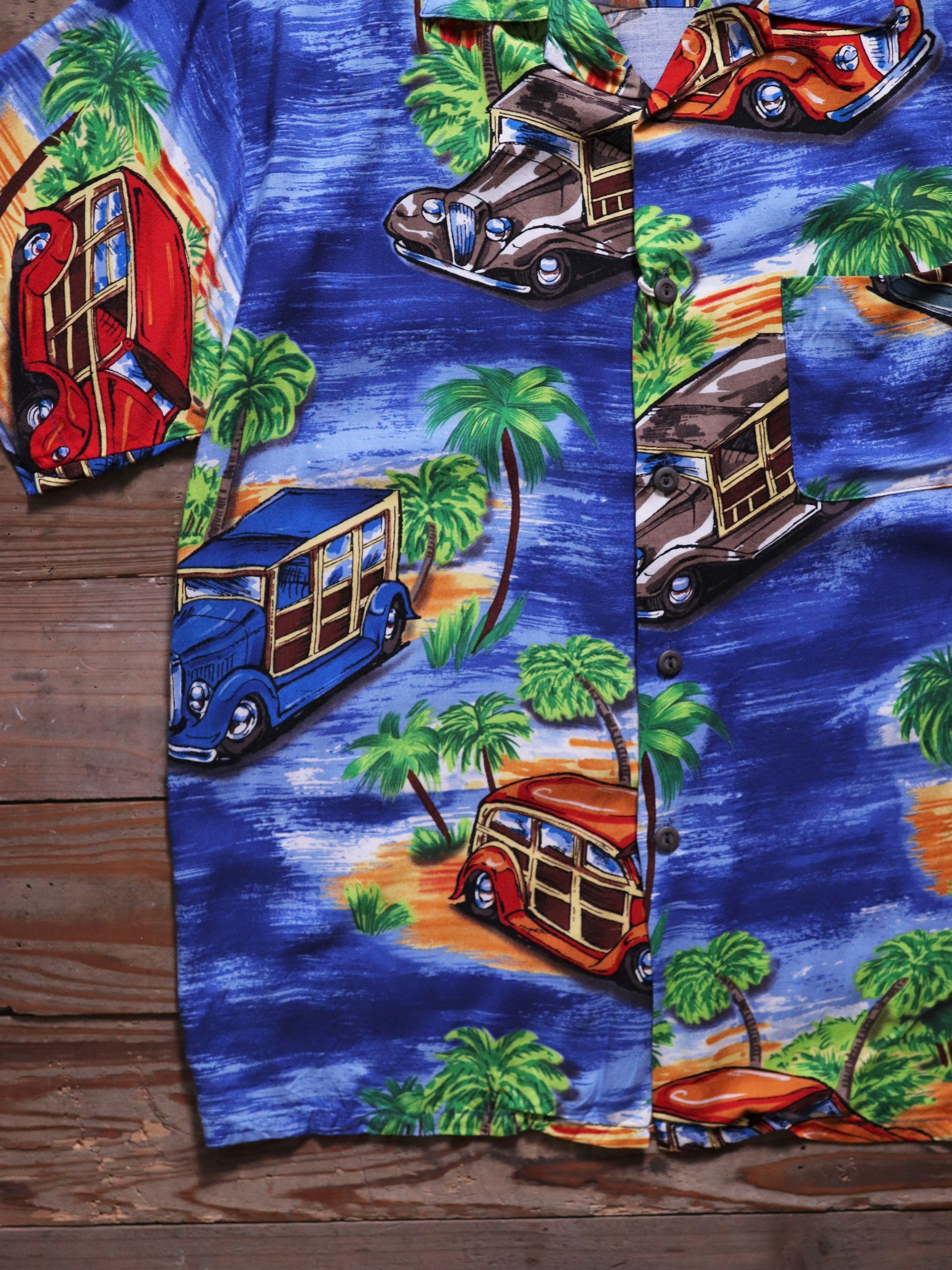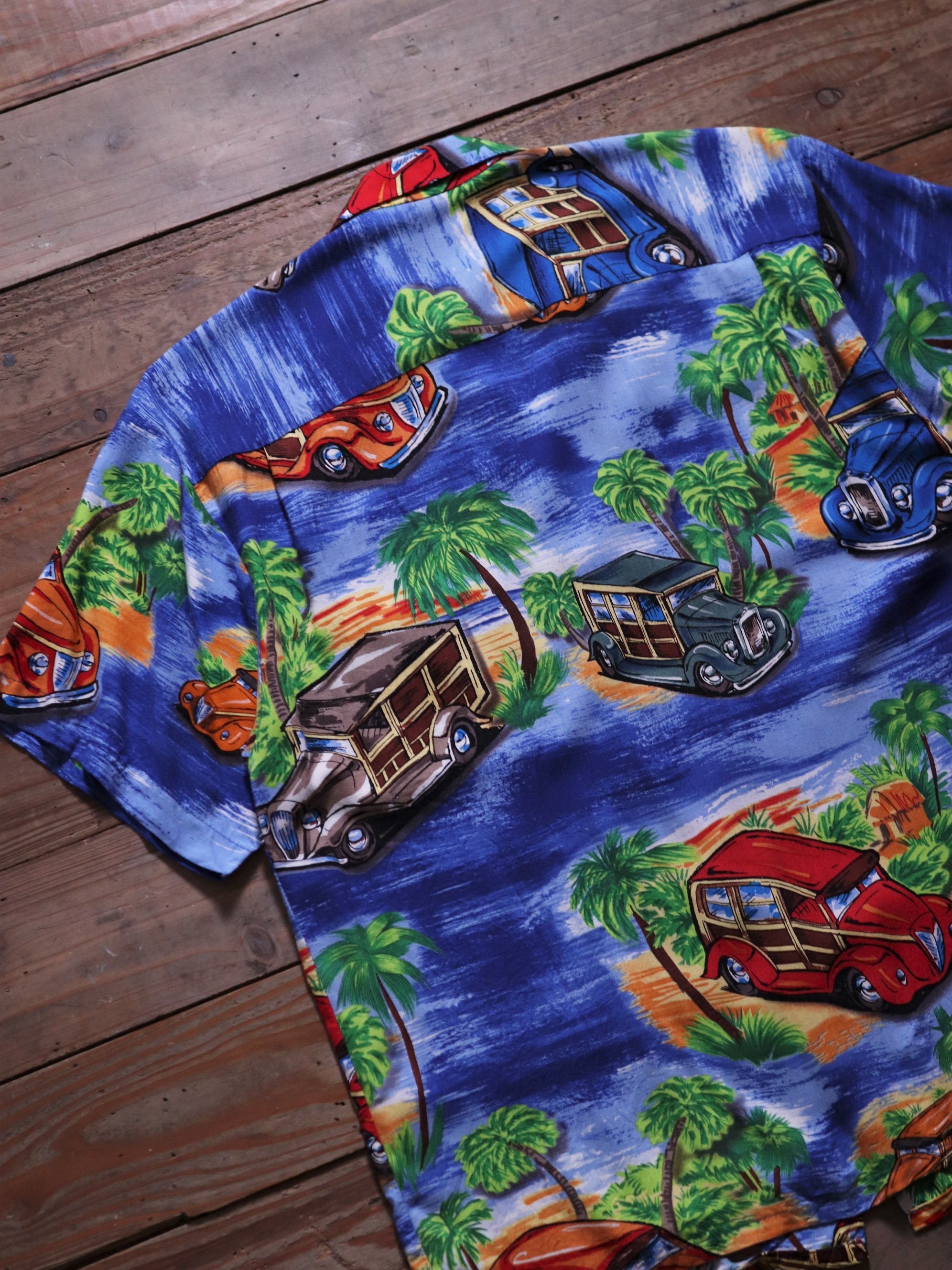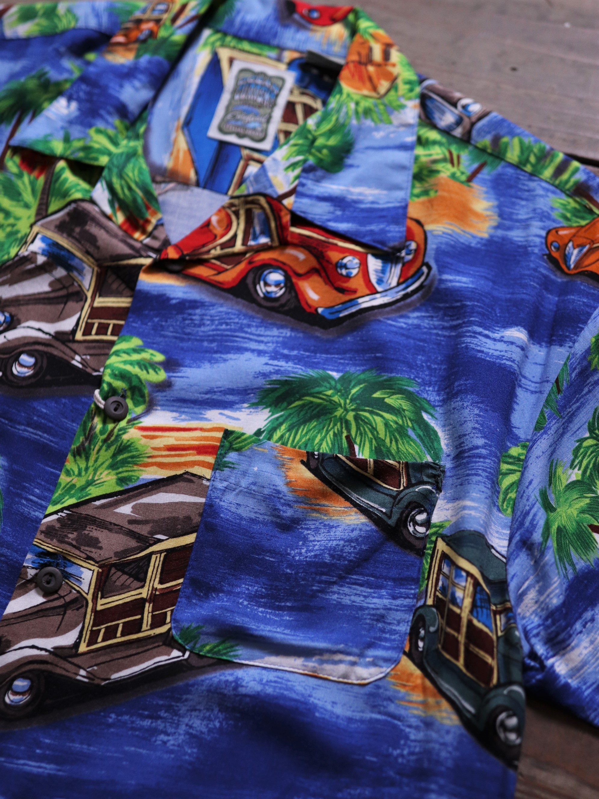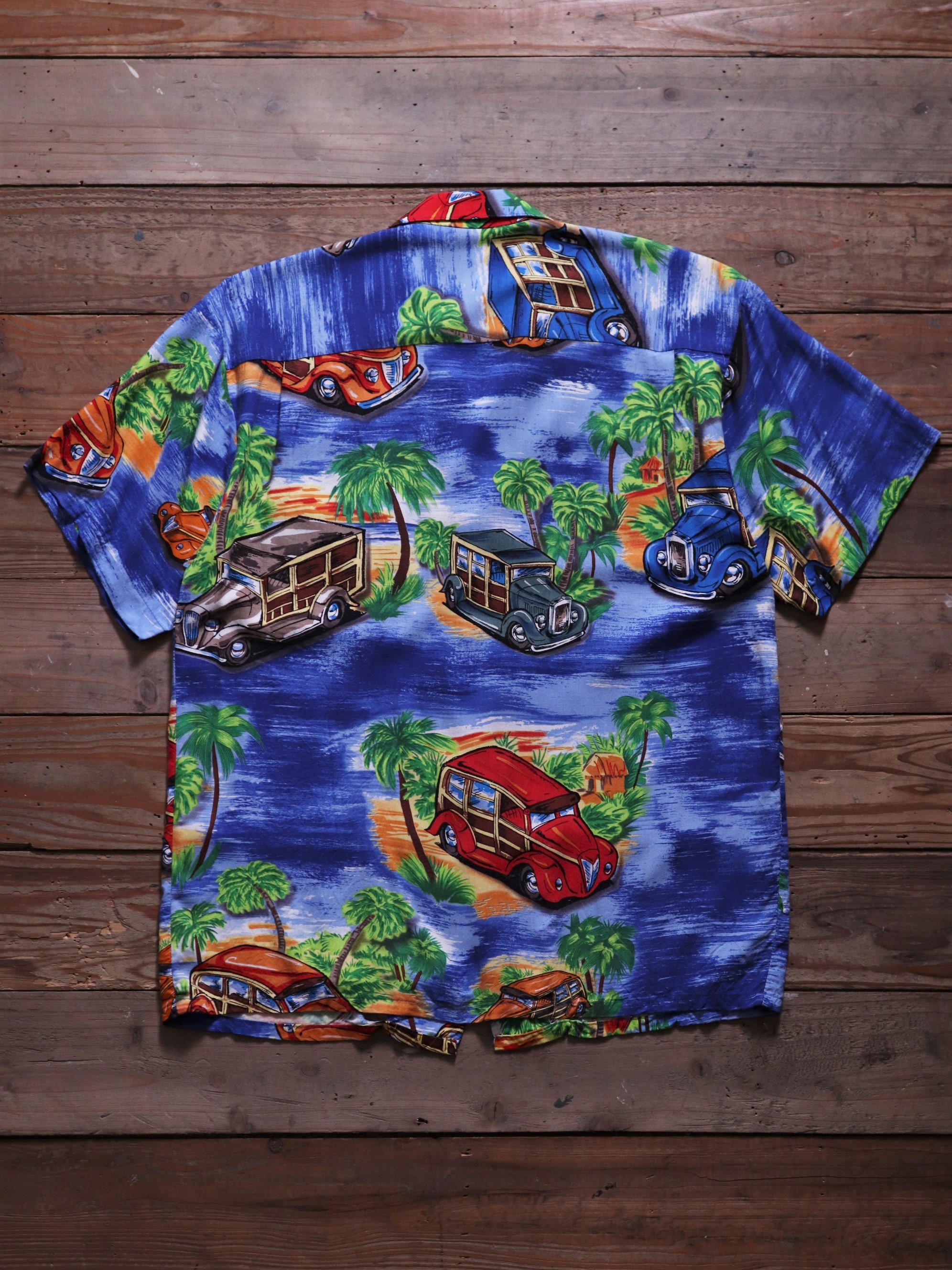 古董車夏威夷襯衫/翻領/100%Rayon/透氣涼爽