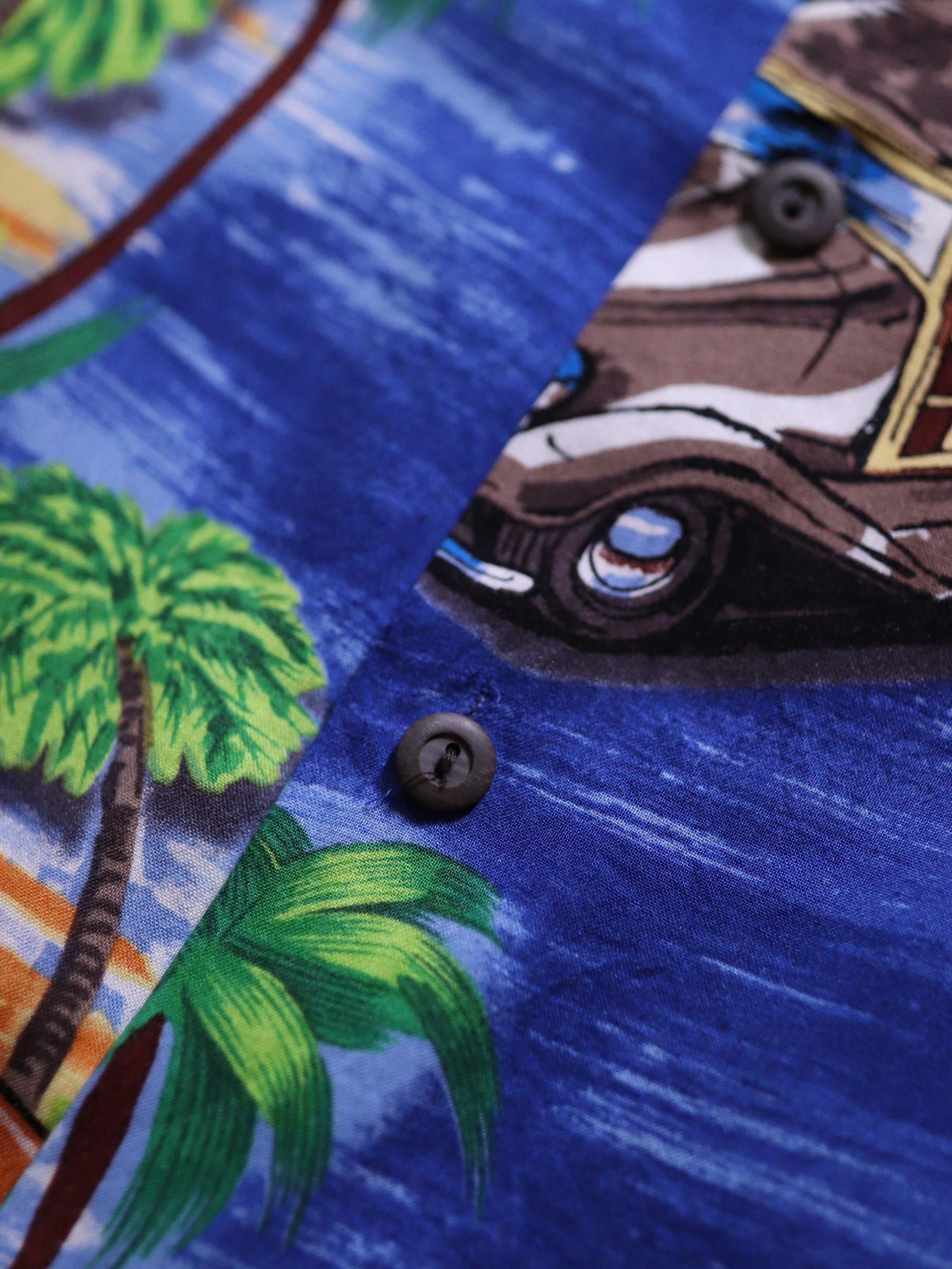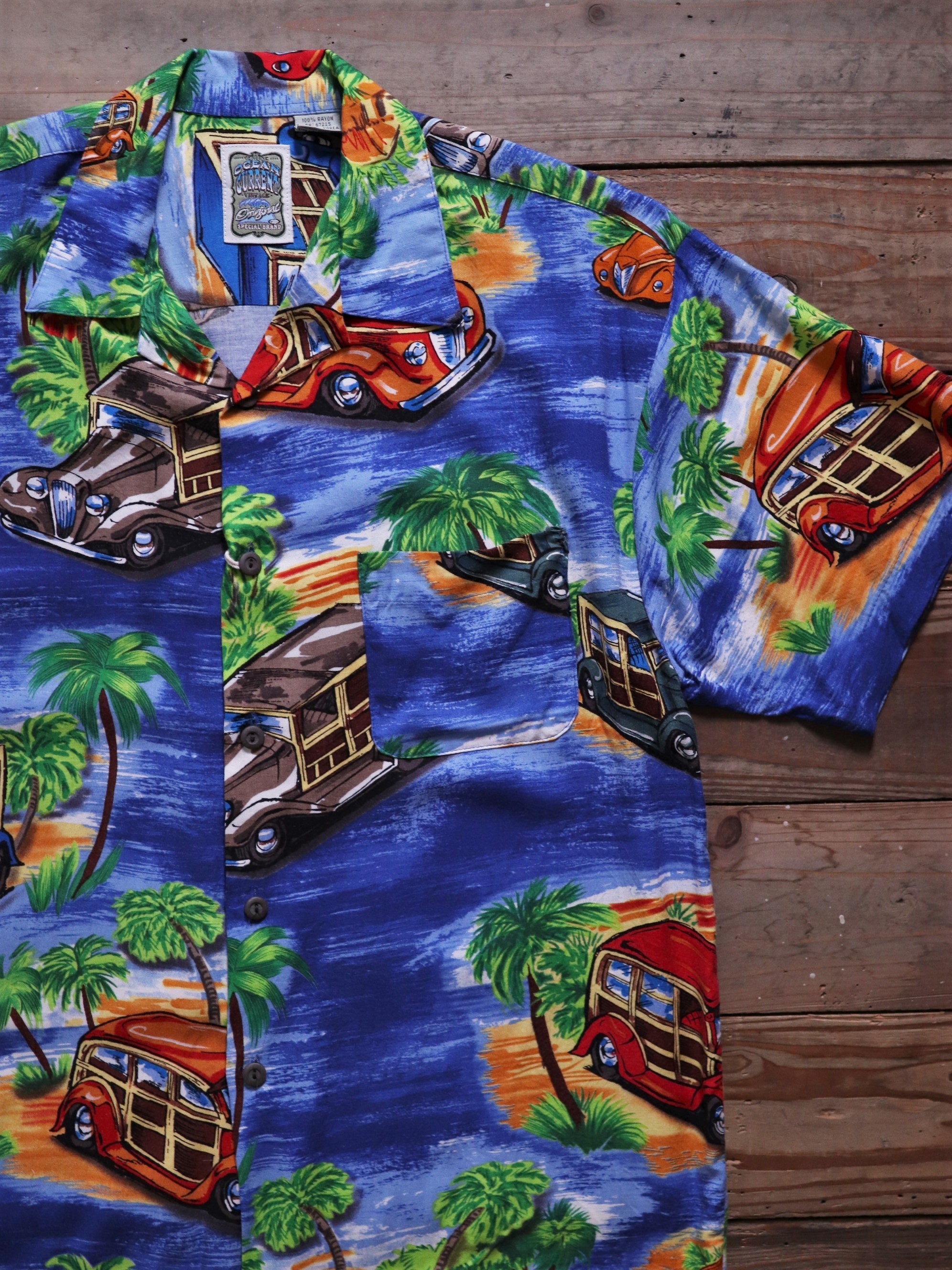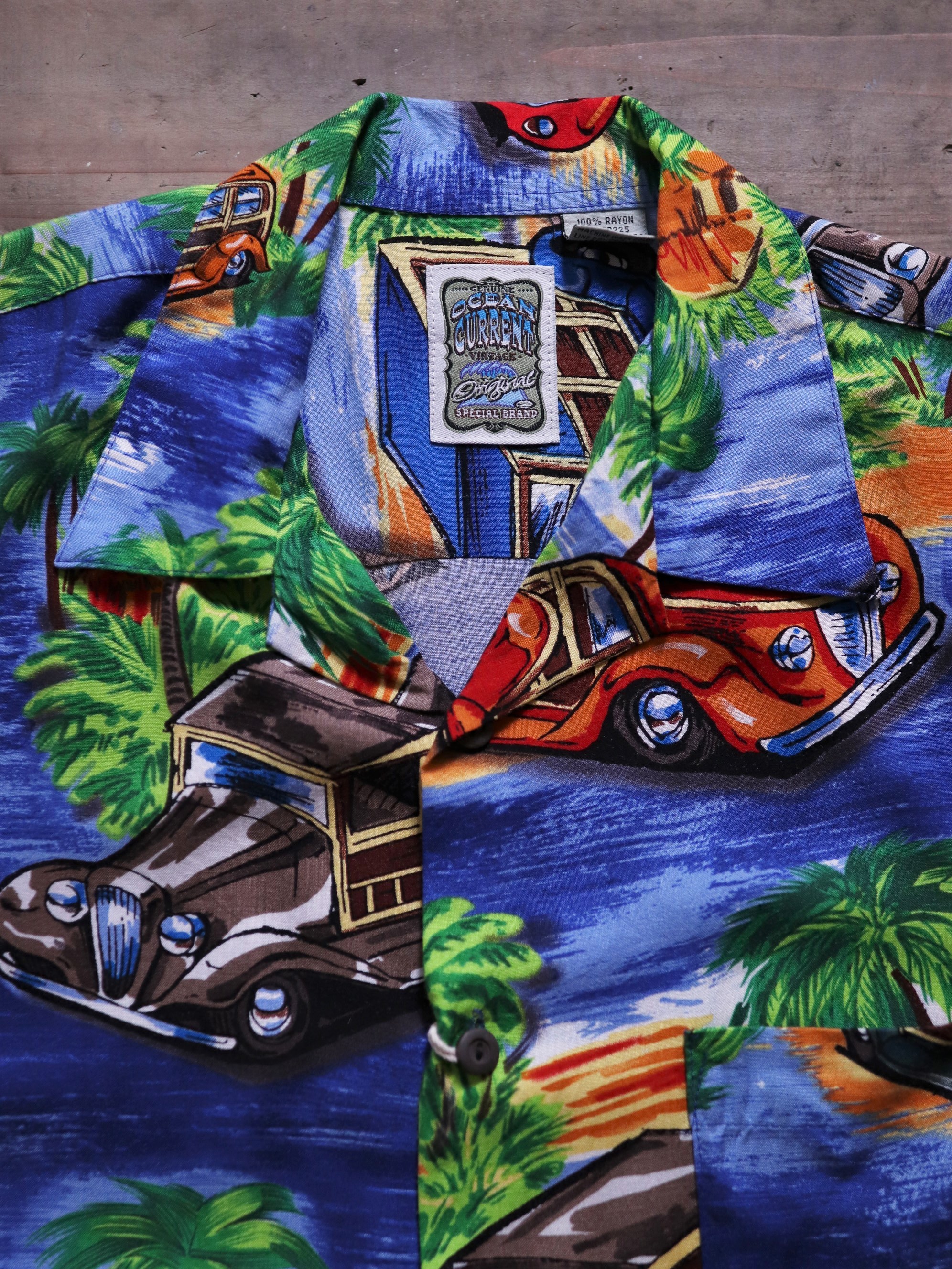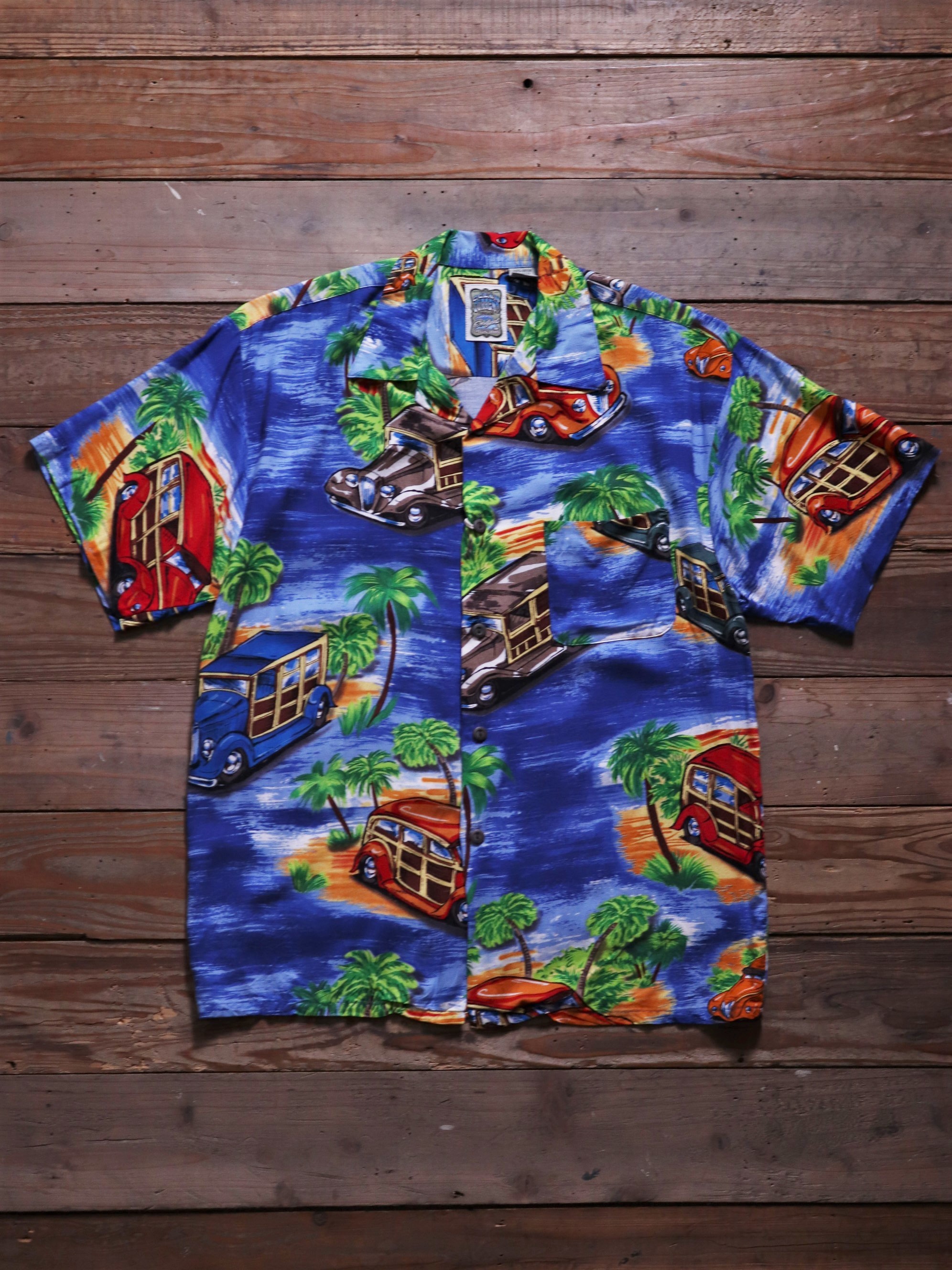 古董車夏威夷襯衫/翻領/100%Rayon/透氣涼爽