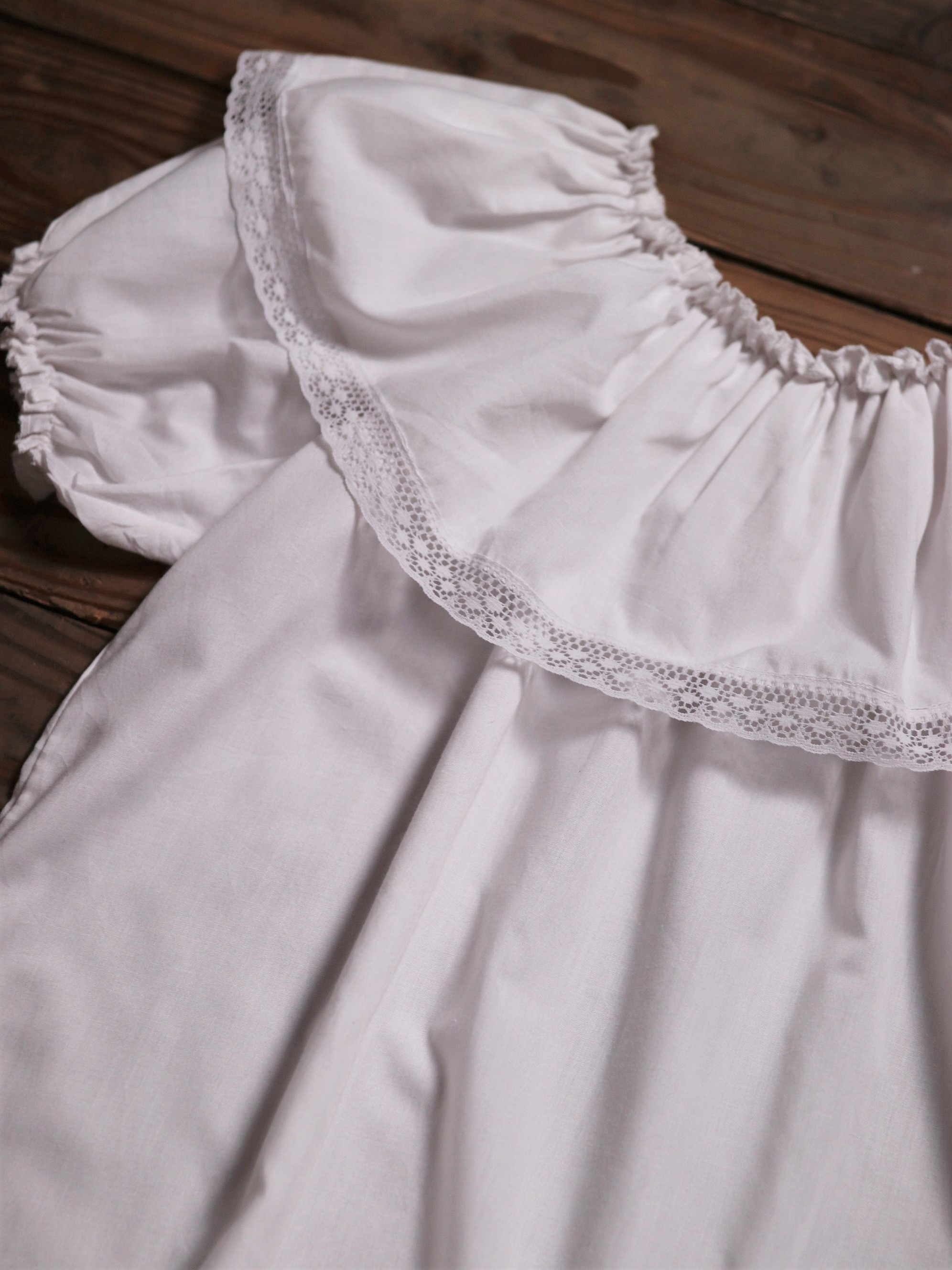 簍空蕾絲/領荷葉/傘狀上衣/彈性鬆緊