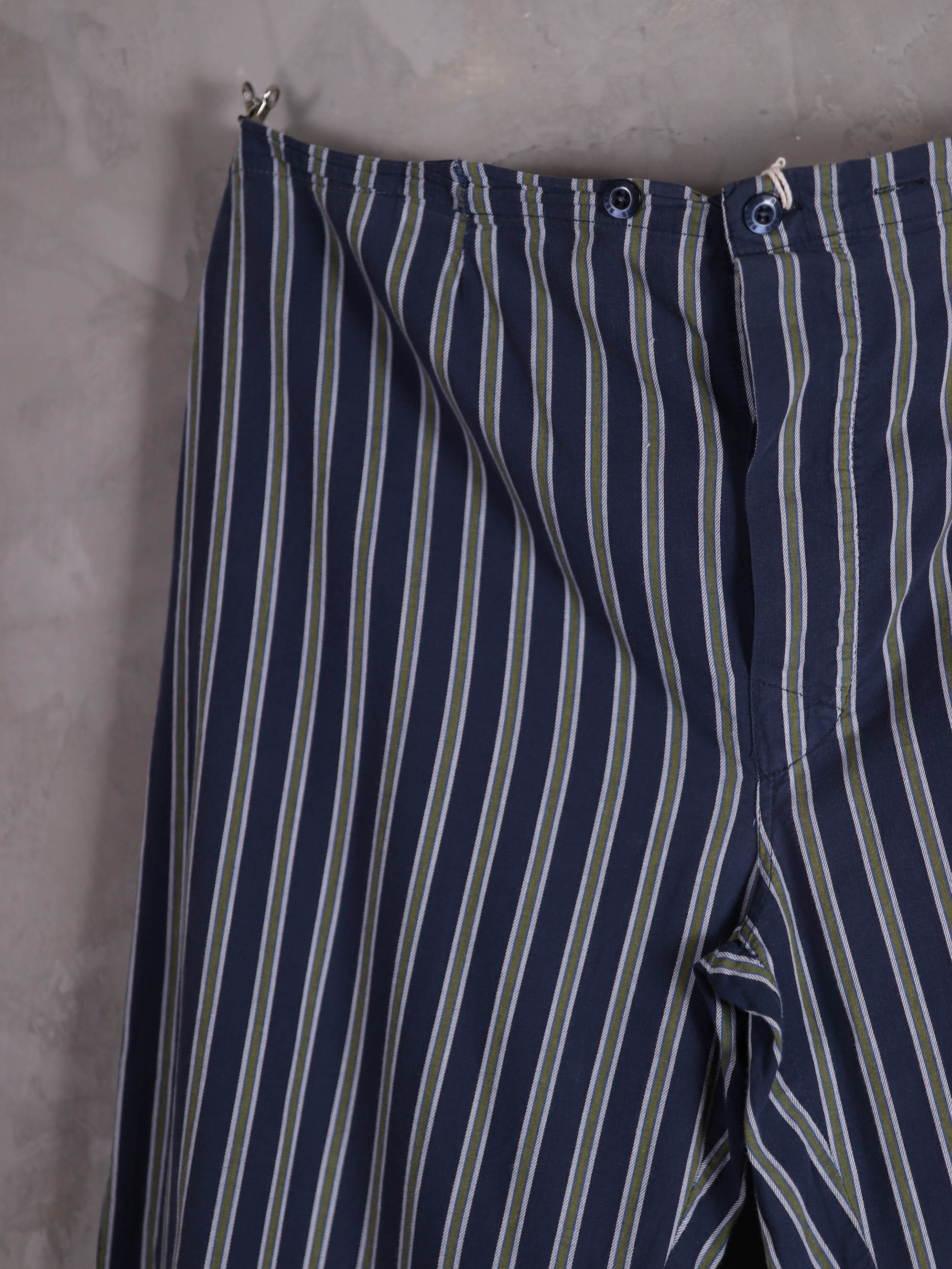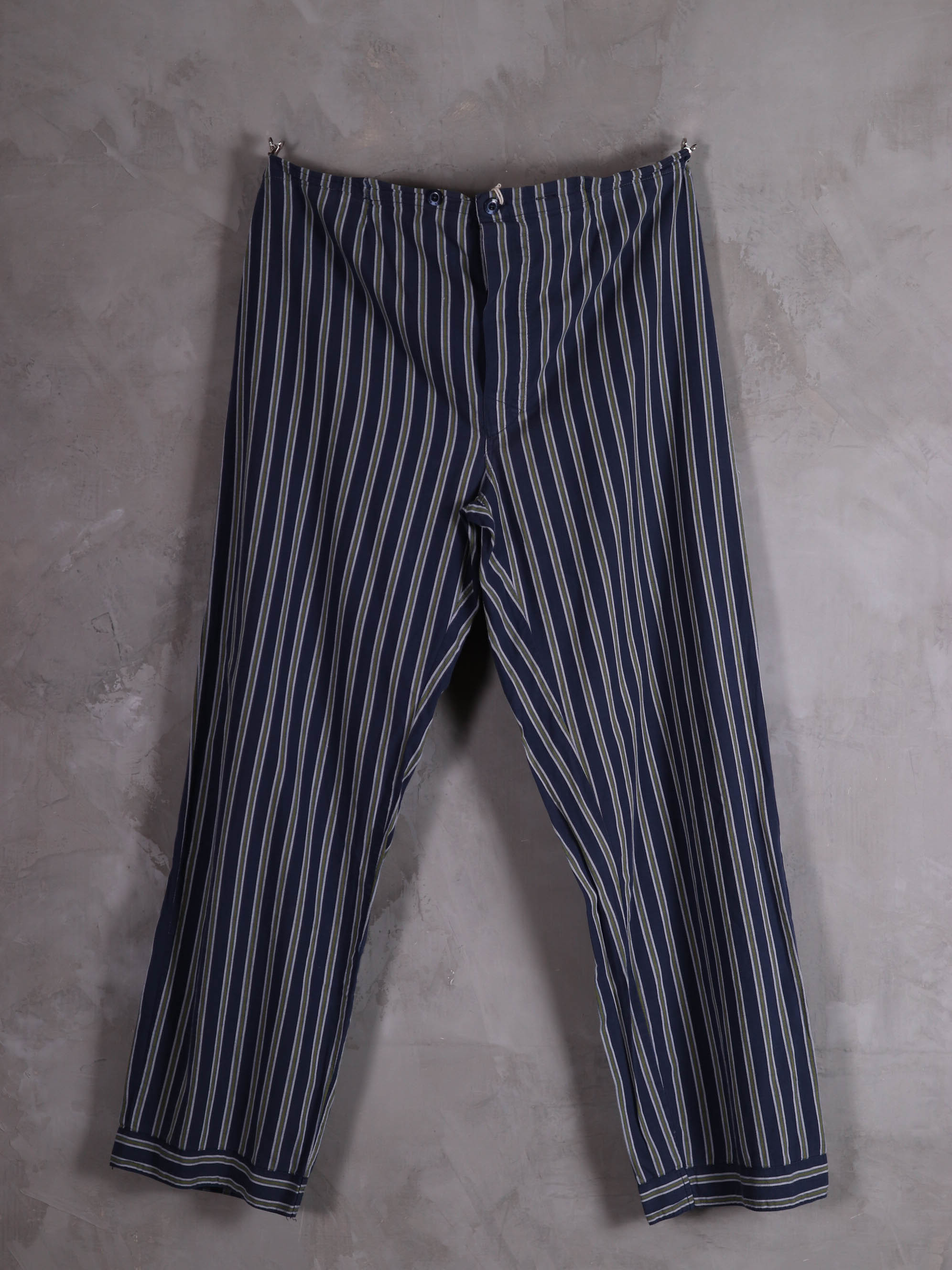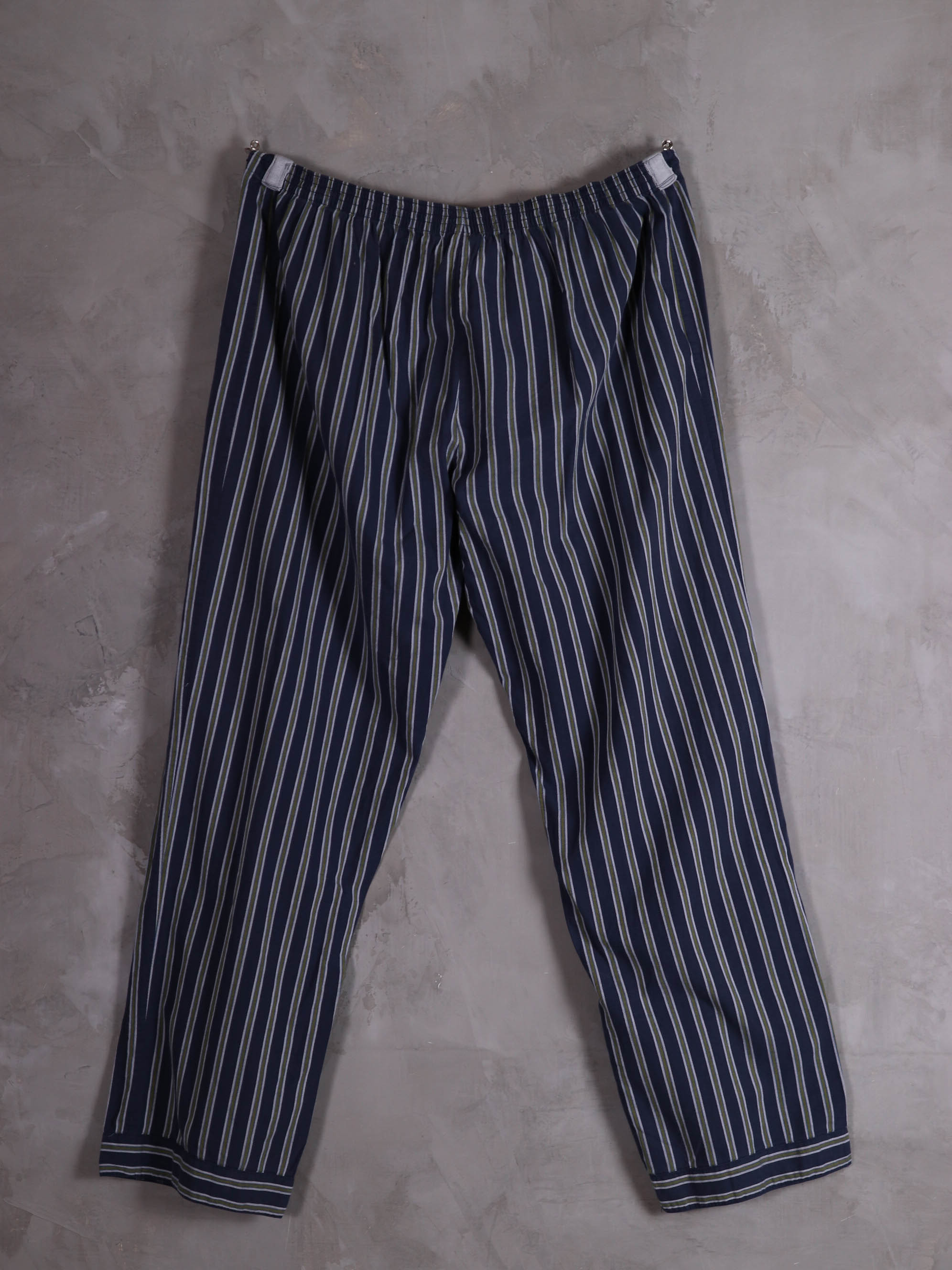 上衣與下身分開販售/睡衣套裝/深藍軍綠色條紋印花/腰圍彈性