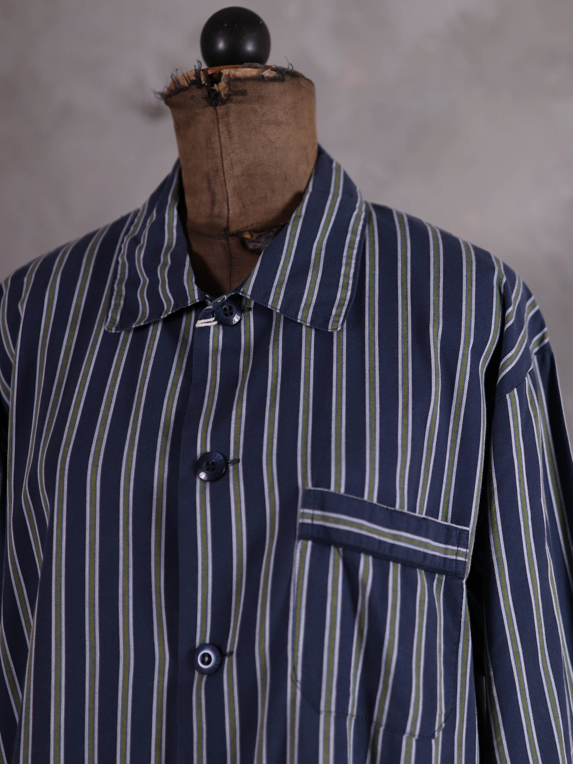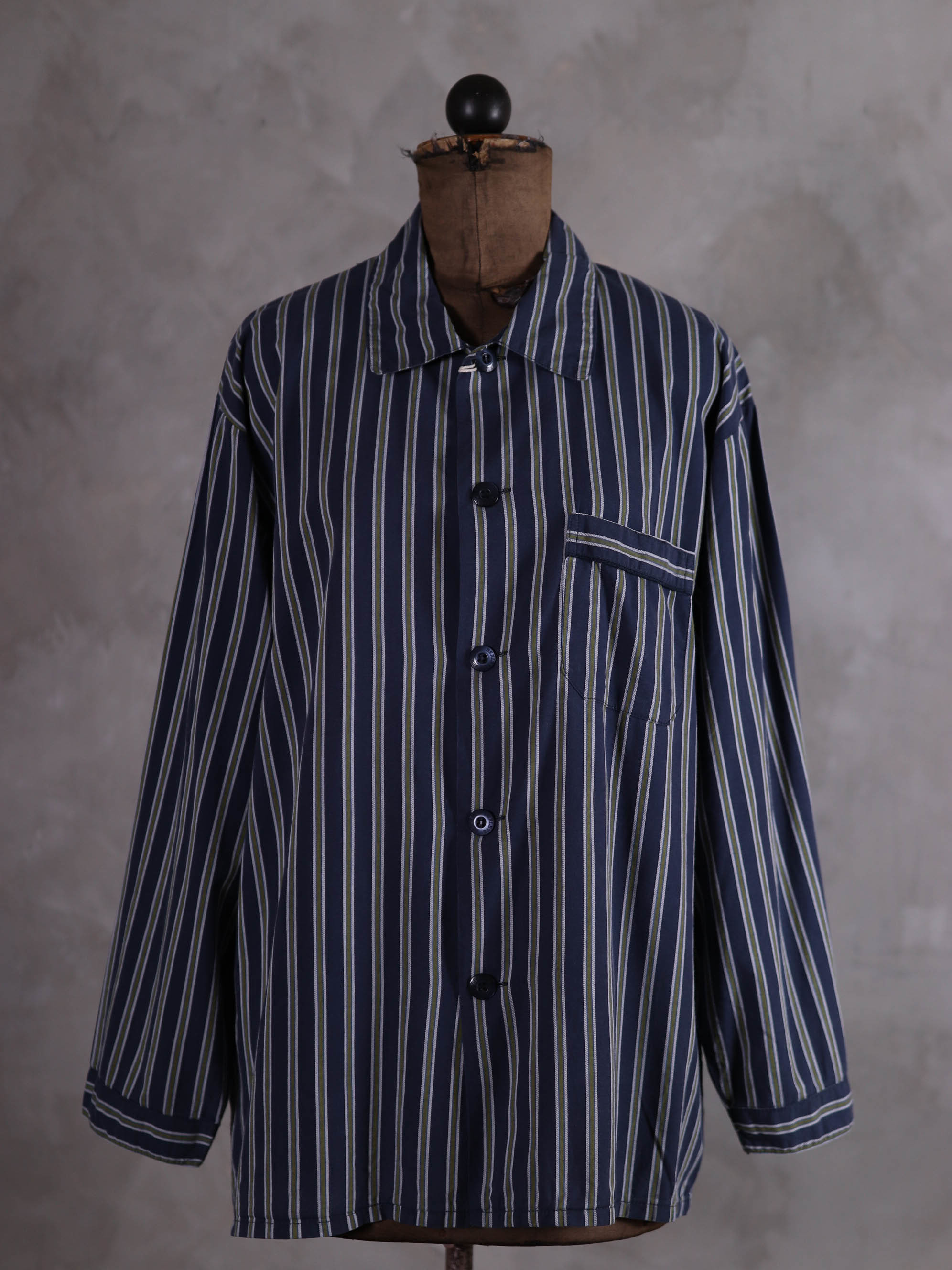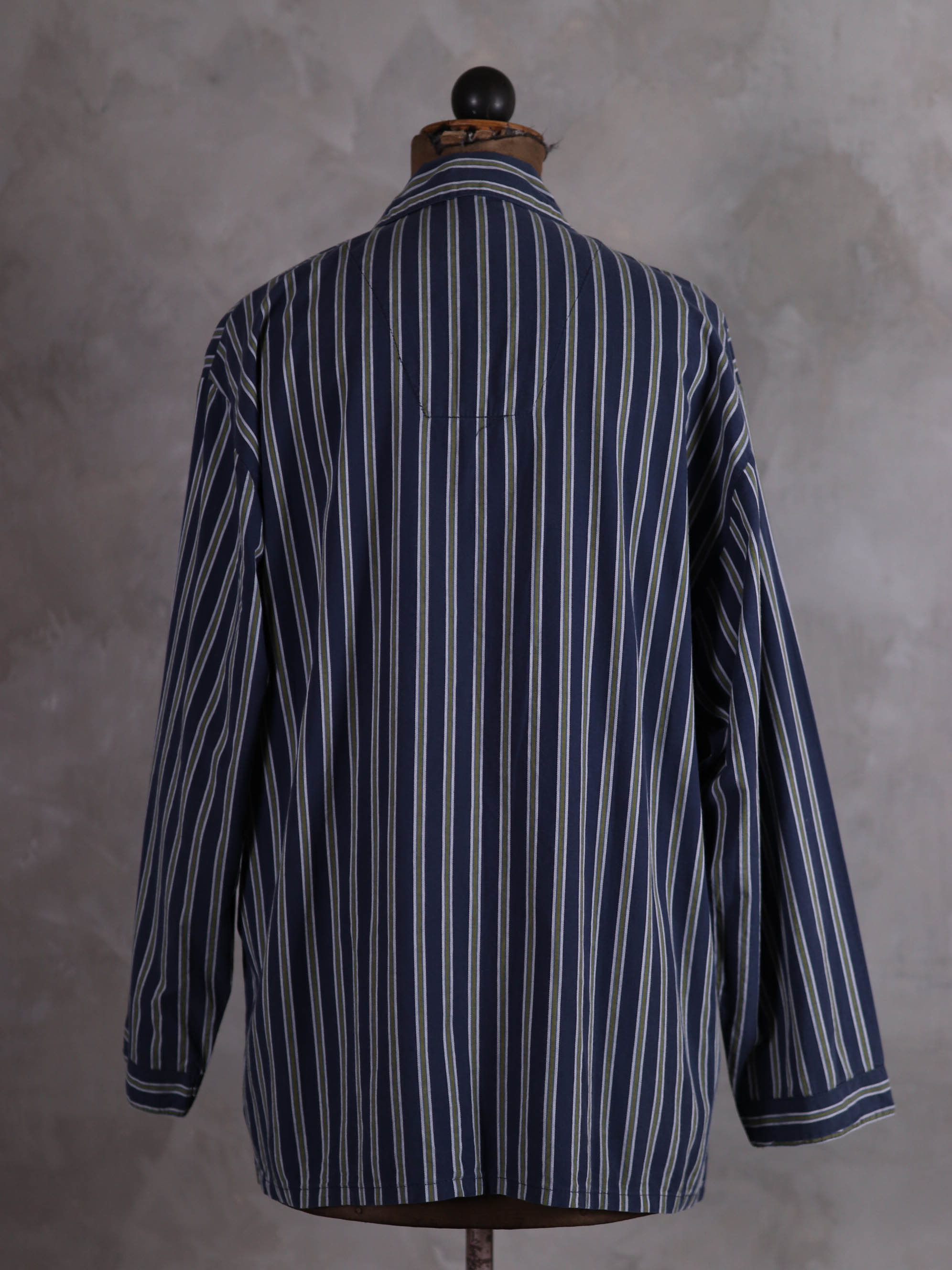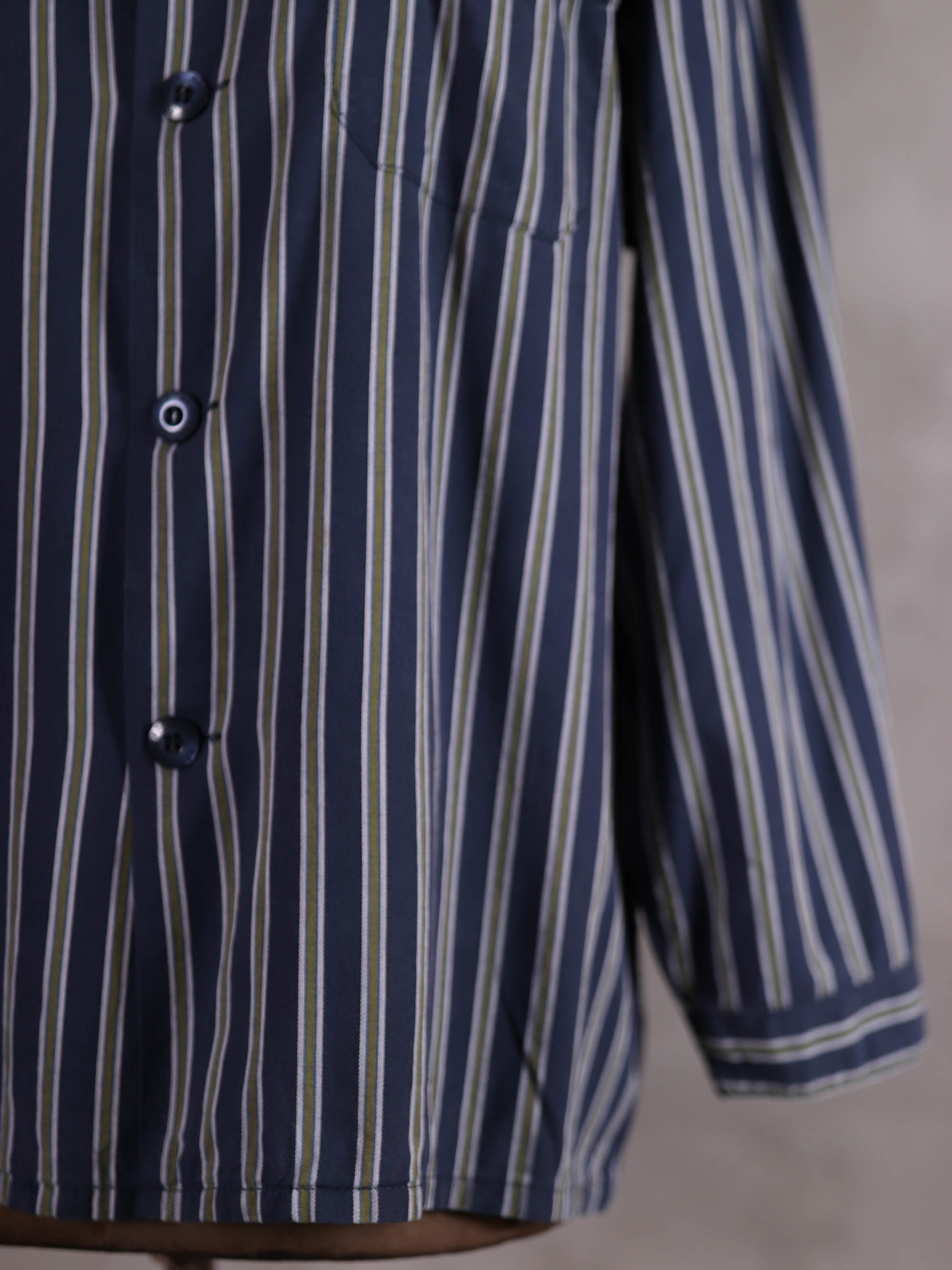 上衣與下身分開販售/睡衣套裝/深藍軍綠色條紋印花/腰圍彈性